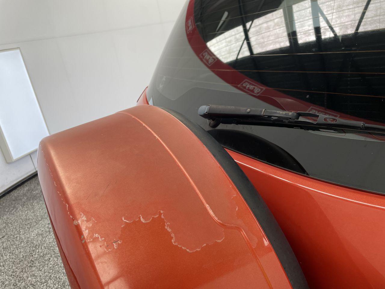 • Paint peeling Spare tire cover at back of car