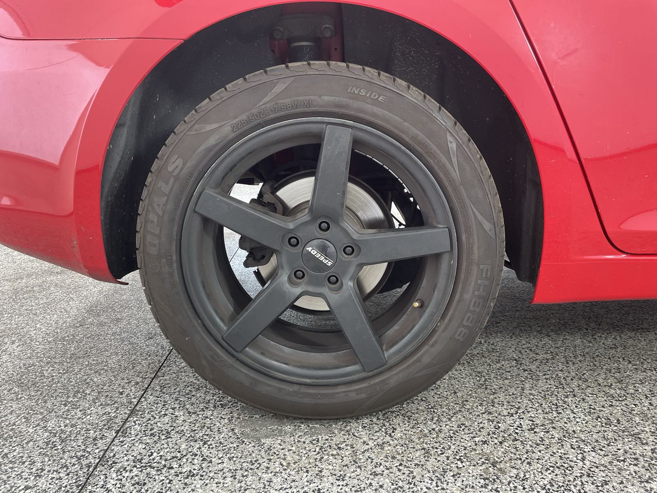 • Exterior: Evidence of coolant leak. Inspection highly recommended. Mismatched wheels