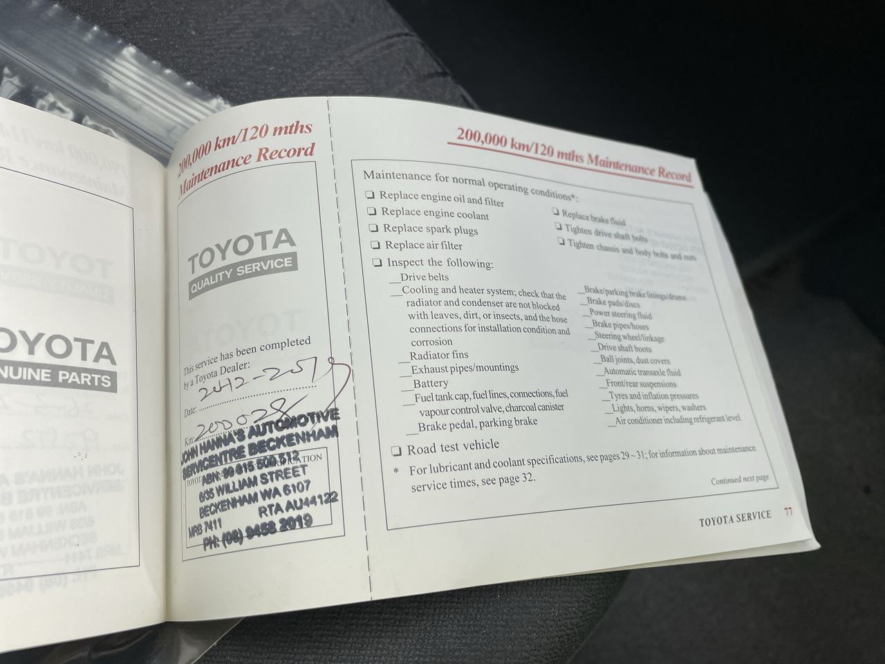 • Dents or marks on body consistent with age and kilometres.