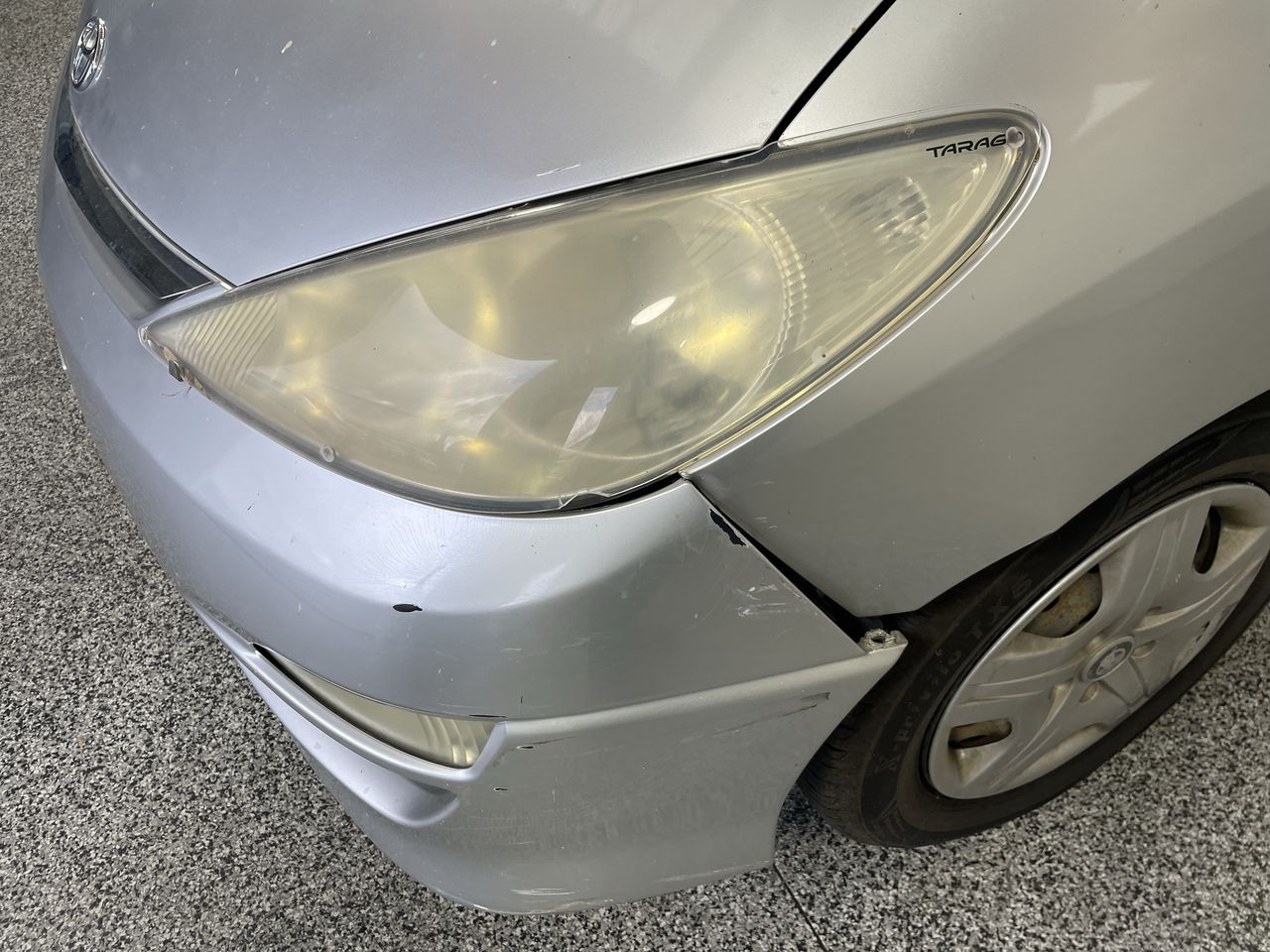 • Passenger side of car Cracked bumper.