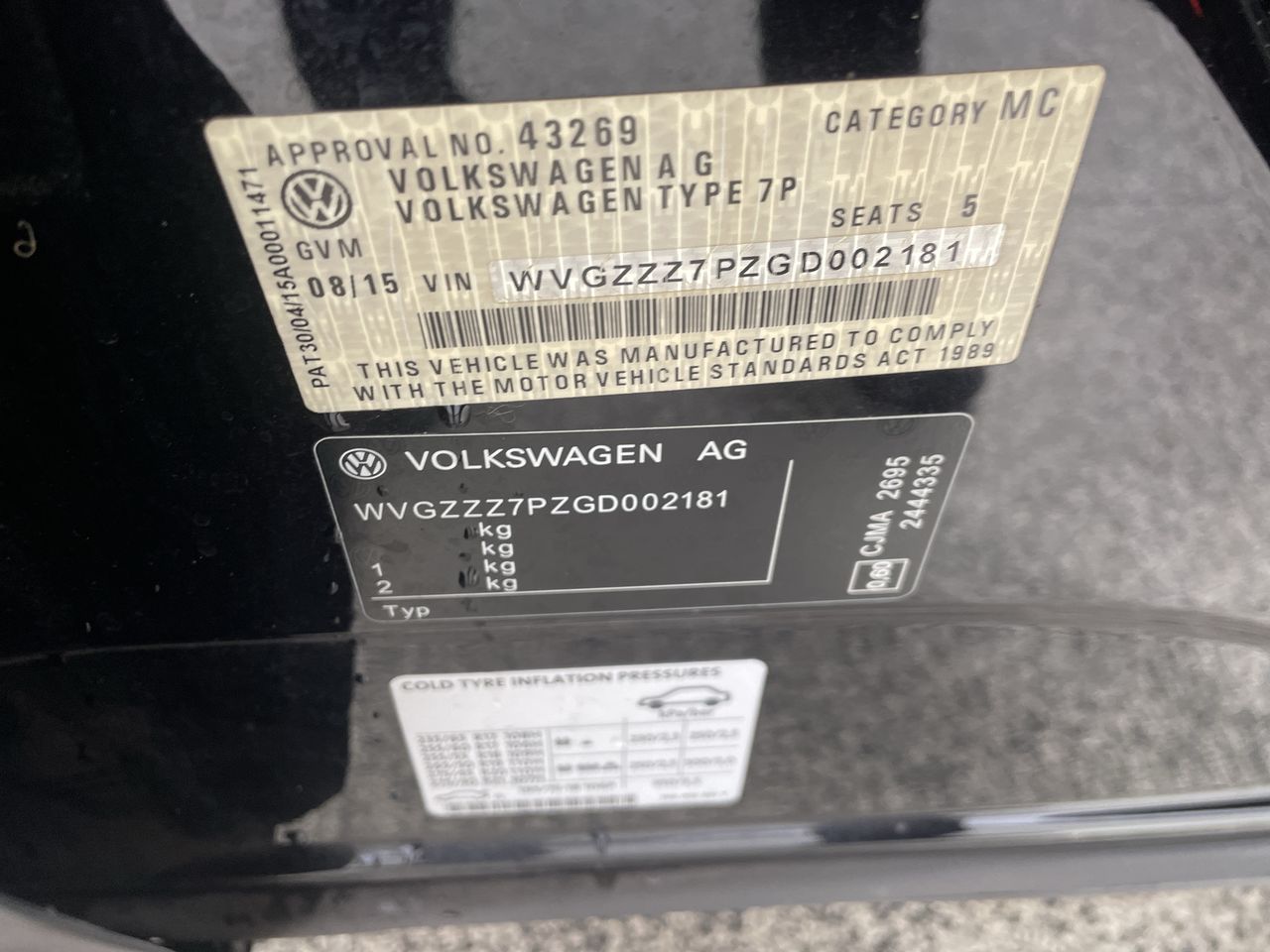 • VIN: WVGZZZ7PZGD002181