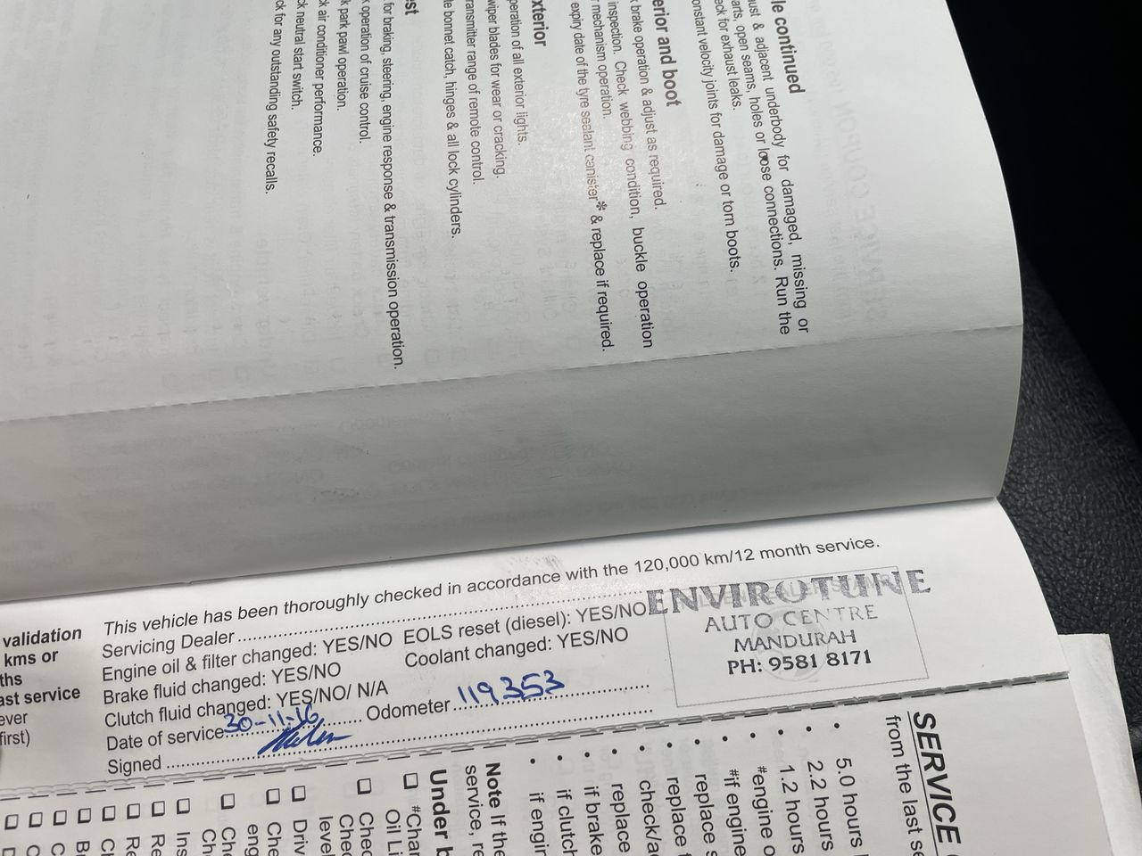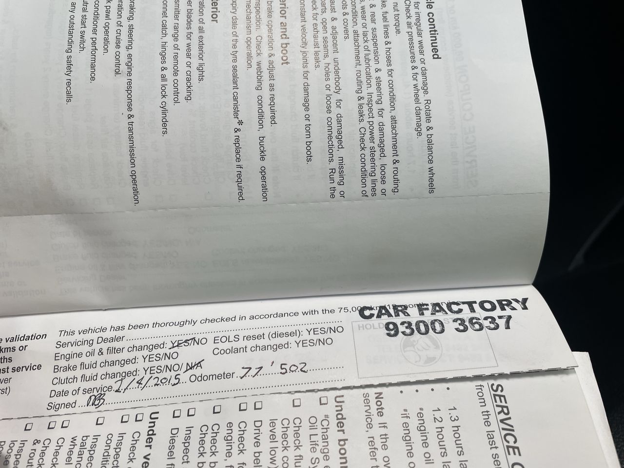 • Dents or marks on body consistent with age and kilometres.