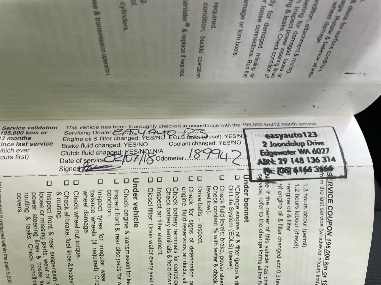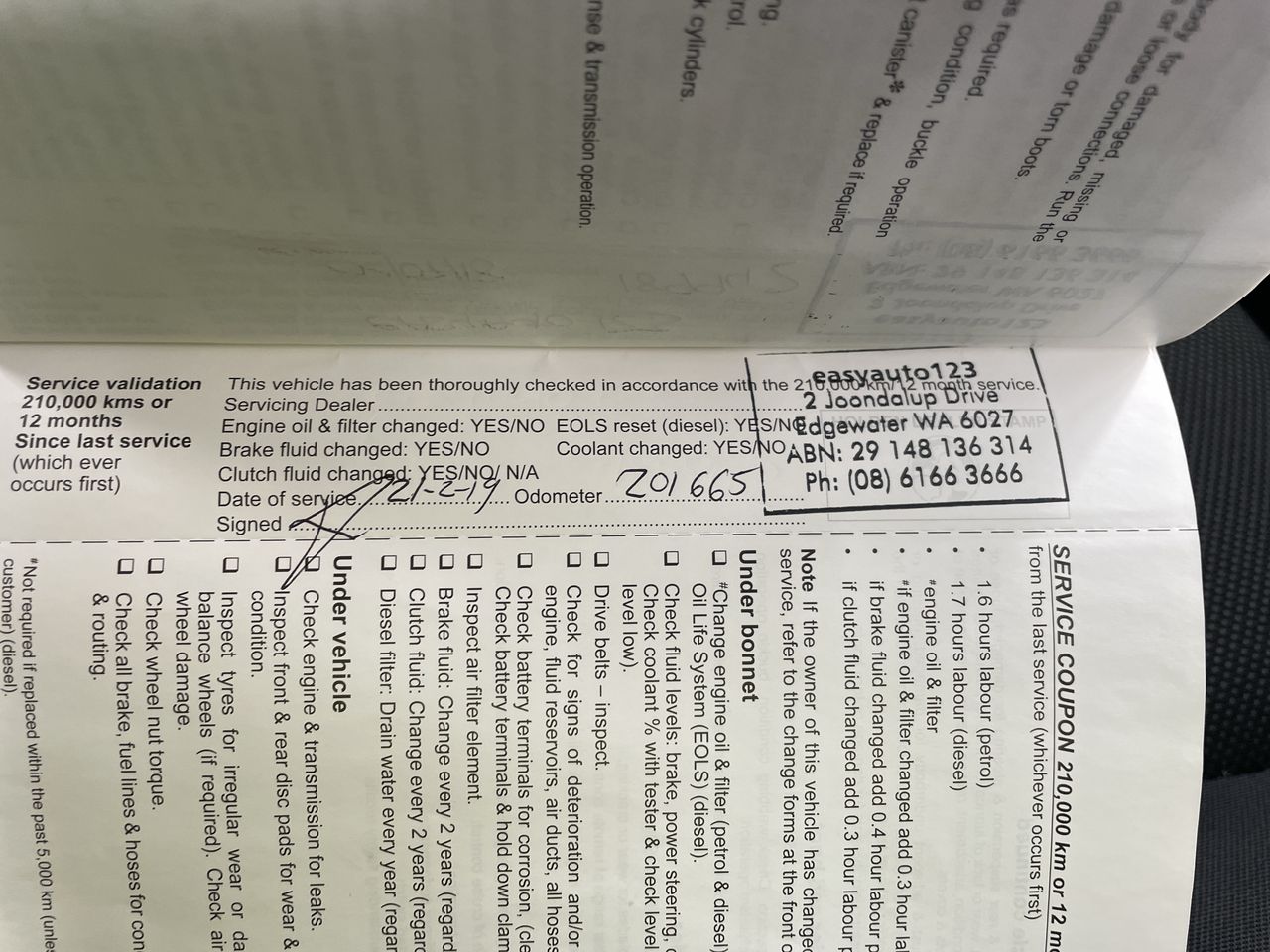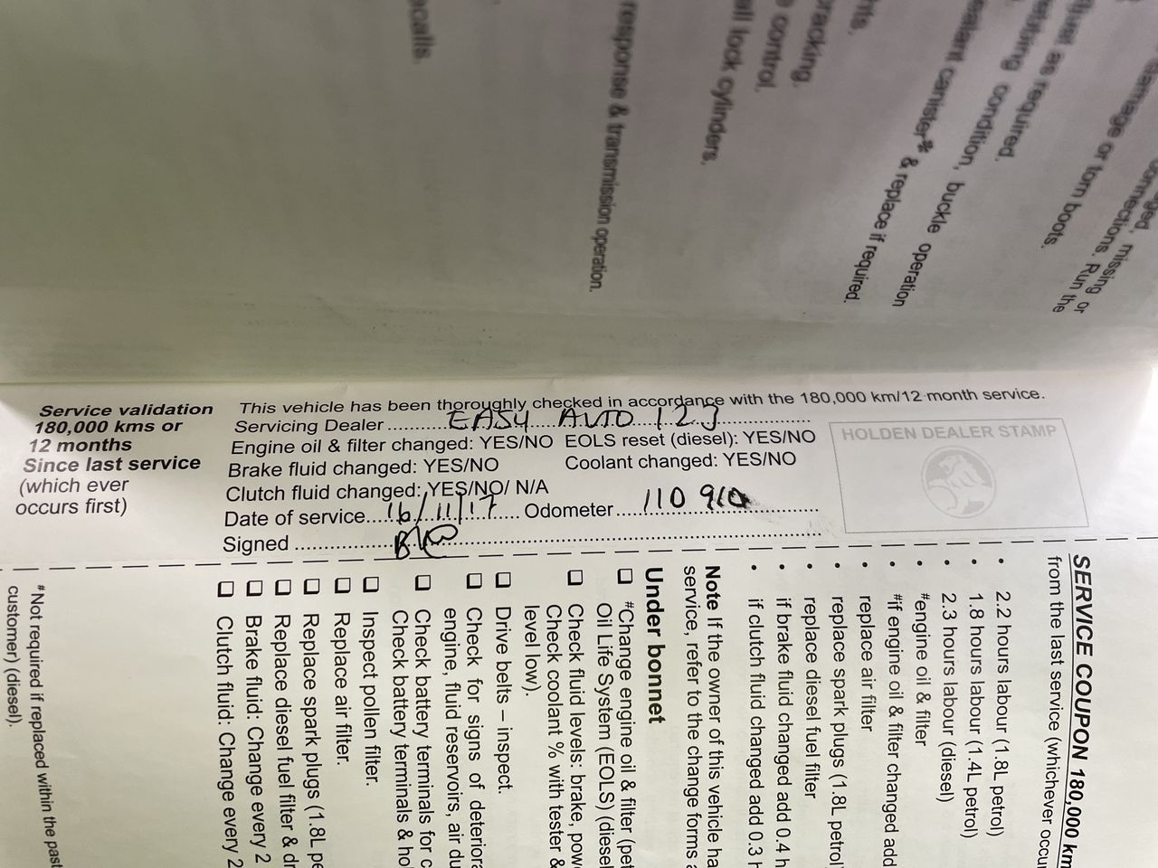• Dents or marks on body consistent with age and kilometres.