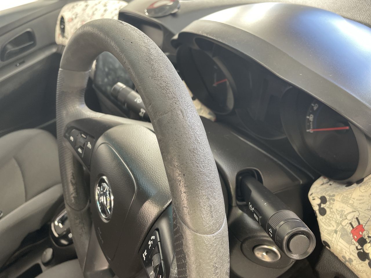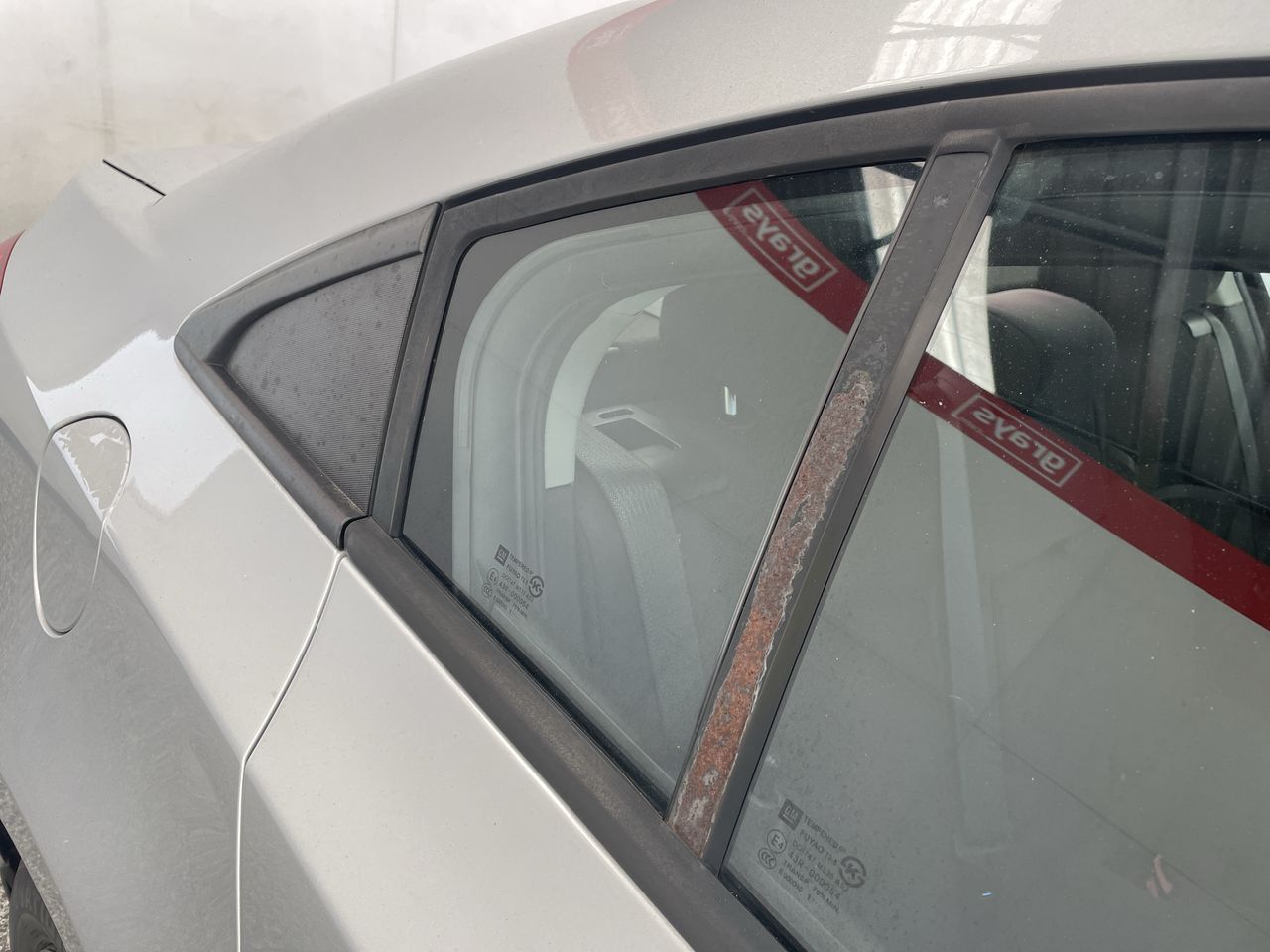 • Interior: Stains on the back of drivers seat, steering wheel worn, Exterior: Outline of a past sticker on drivers side B pillar, spray painted rims, windscreen chipped