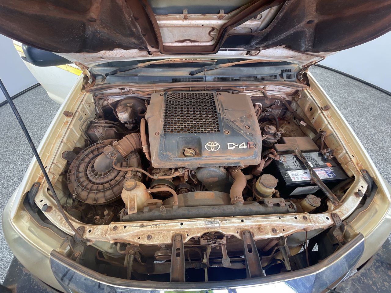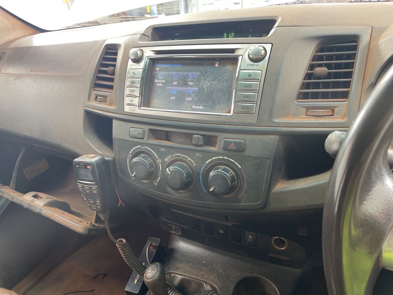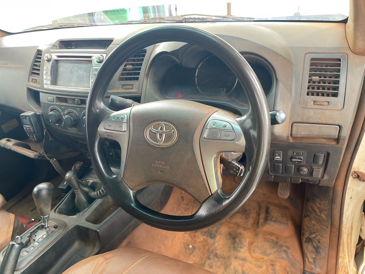 • Interior: Red dust covering everything, cracked radio screen, Exterior: Bonnet really hard to open, red dust covering the car, red dust all throughout engine, canopy is very paint cracked, small scratches around all door handles