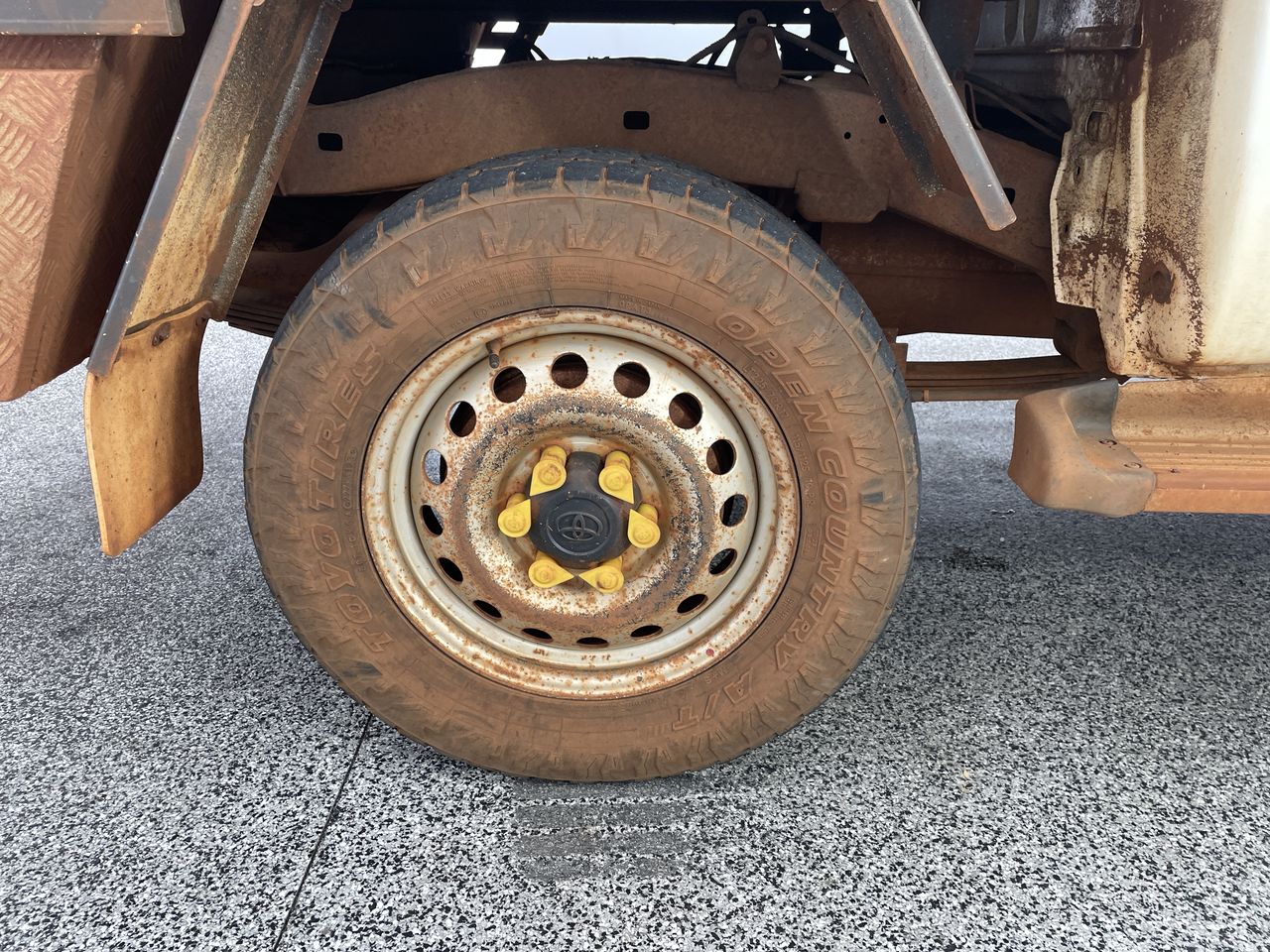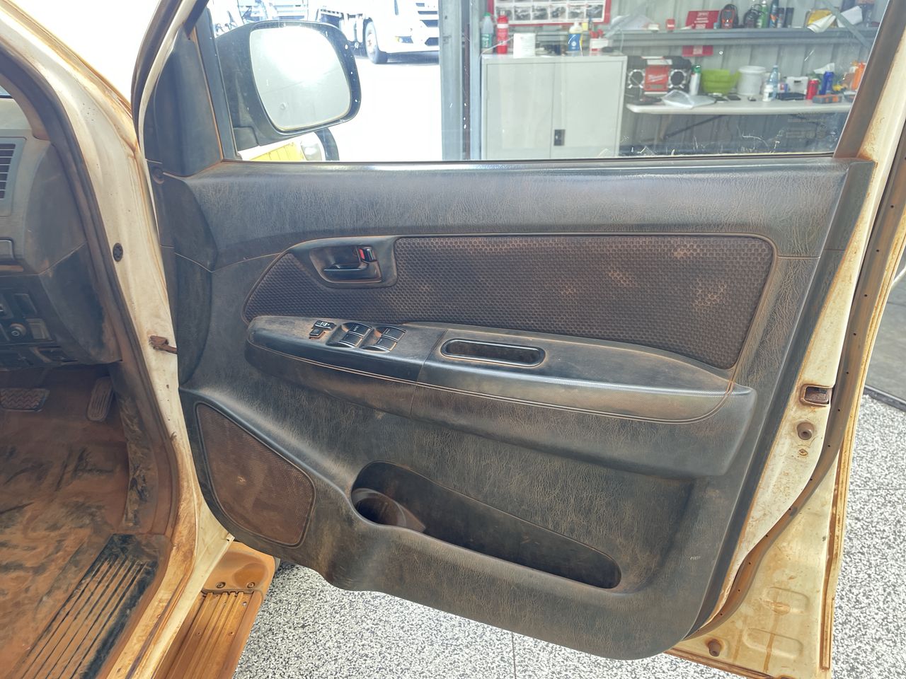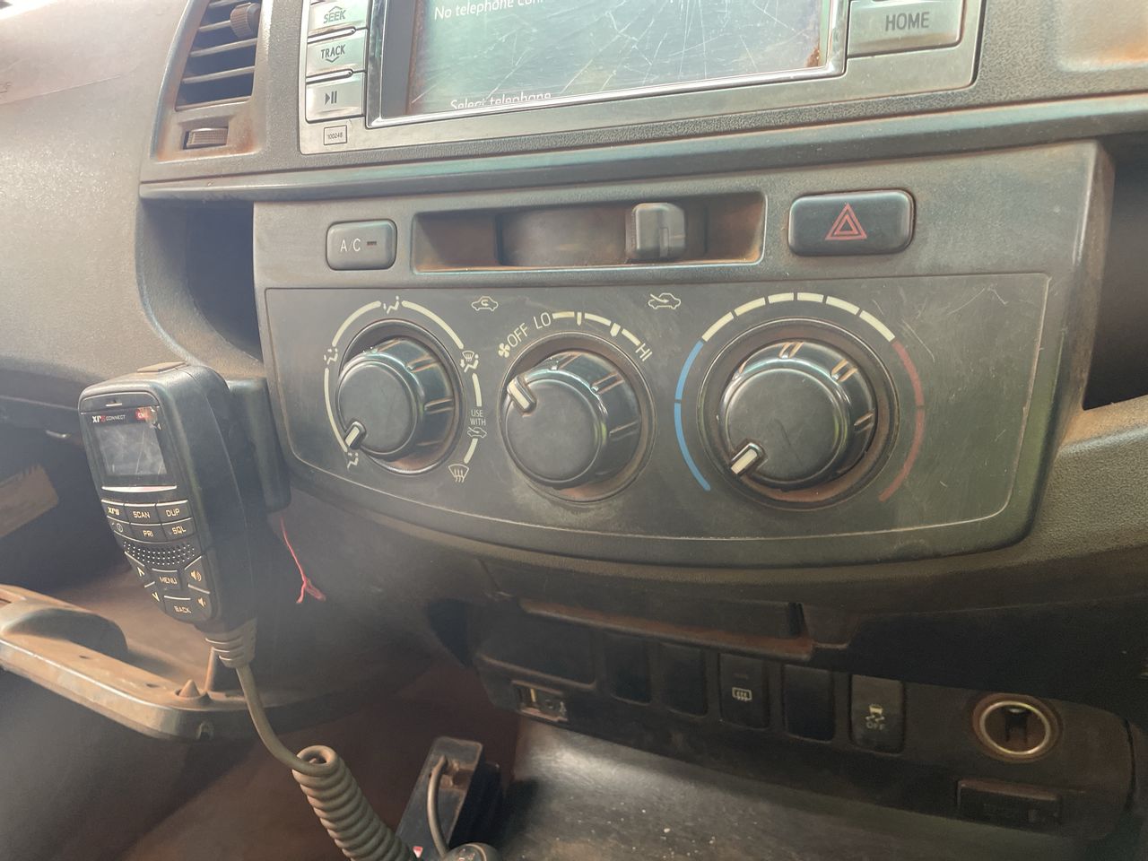 • Interior: Red dust covering everything, cracked radio screen, Exterior: Bonnet really hard to open, red dust covering the car, red dust all throughout engine, canopy is very paint cracked, small scratches around all door handles