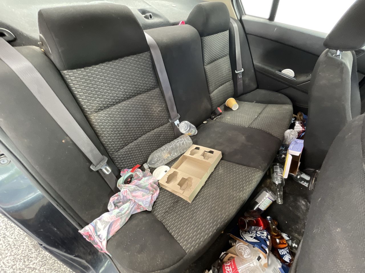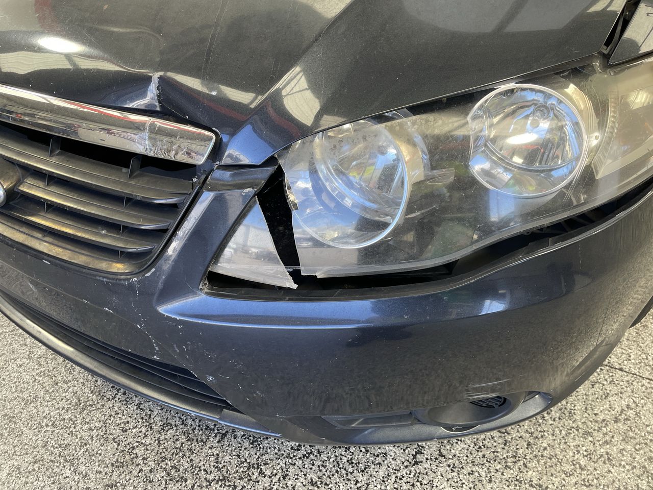 • Interior: No interior drivers door handle, missing various plastic covers, missing centre console lid, various torn cloth throughout vehicle, unknown wiring hanging out of drivers footwell, various rubber door seals broken or hanging, Exterior: Driver rear door window doesn’t open, broken front bumper, broken passenger headlight, rust on boot with hole