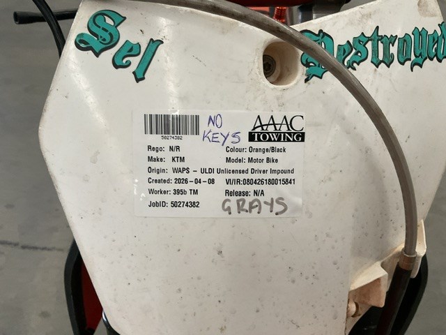 Disclaimer: If a registration expiry is noted in the description, then the assets registration will expire on that date and Grays will not be responsible for a renewal of the registration. For the avoidance of doubt, if the registration expires before or during an auction or sale, it is the buyers responsibility for registration renewal and payment so Grays can transfer the current registration to the buyer. If the buyer does not pay the registration or is from outside of WA, assets will be sold unregistered without plates. If there is no registration expiry provided in the description, then the vehicle will be sold unregistered with no plates. Description and photos are for use as a guide only, inspection is highly recommended prior to bidding.