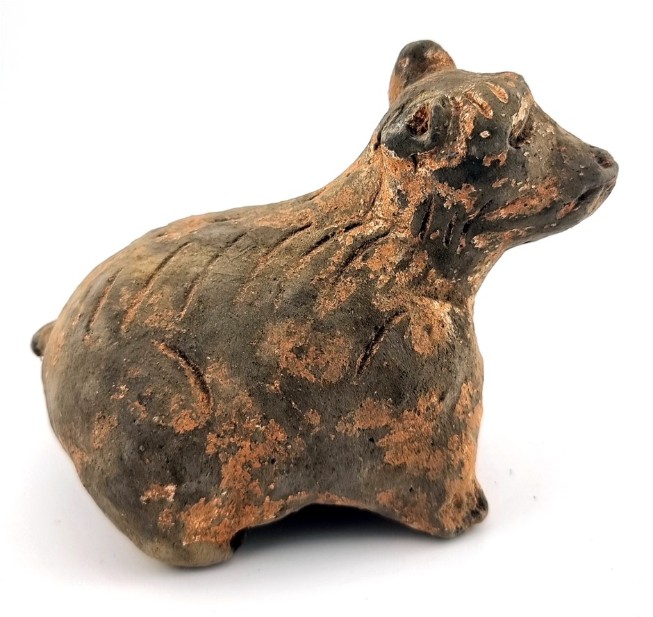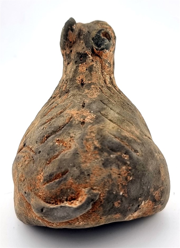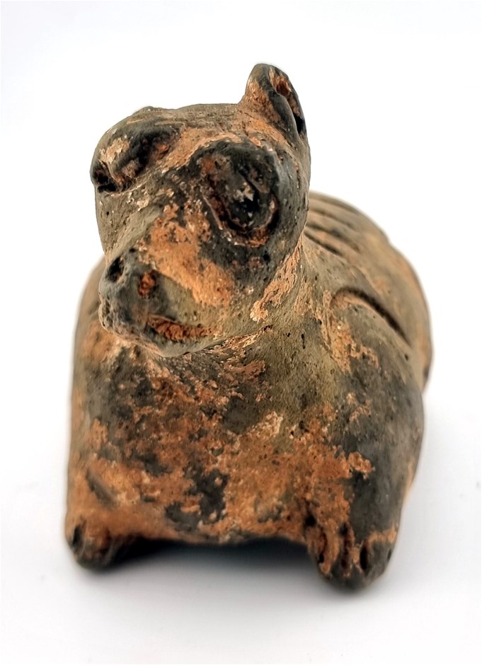 • A Supurb Han Dynasty (206BC - 220AD) Shaped Earthenware Animal Sculpture Glazed with Mineral Pigment Over Natural Clay and Used as a Tomb Object