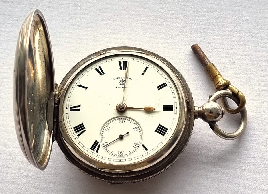 ANTIQUE ROTHERHAMS STERLING SILVER POCKET WATCH