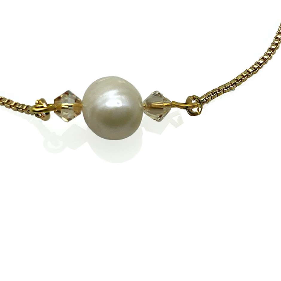 Freshwater Pearl Adorned with Swarovski® Crystal Real Gold Plated Chain with Adjustable Slider Bracelet.