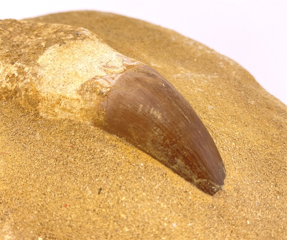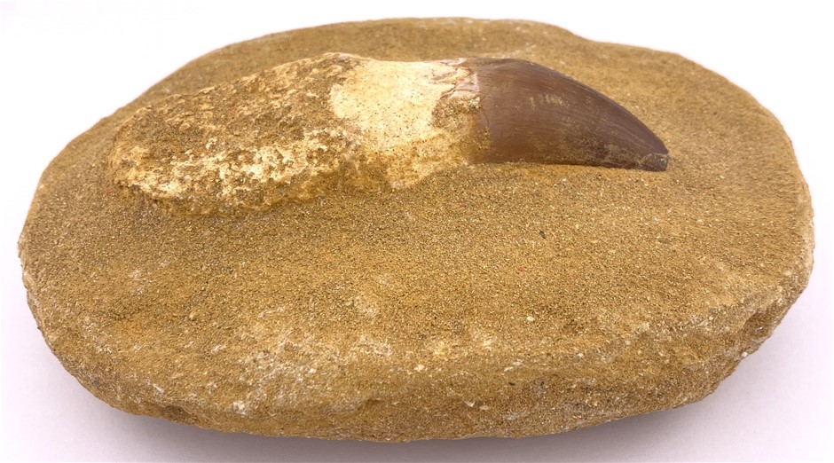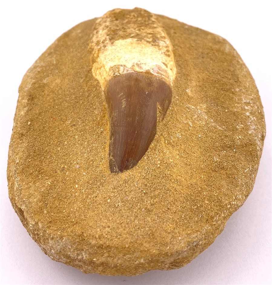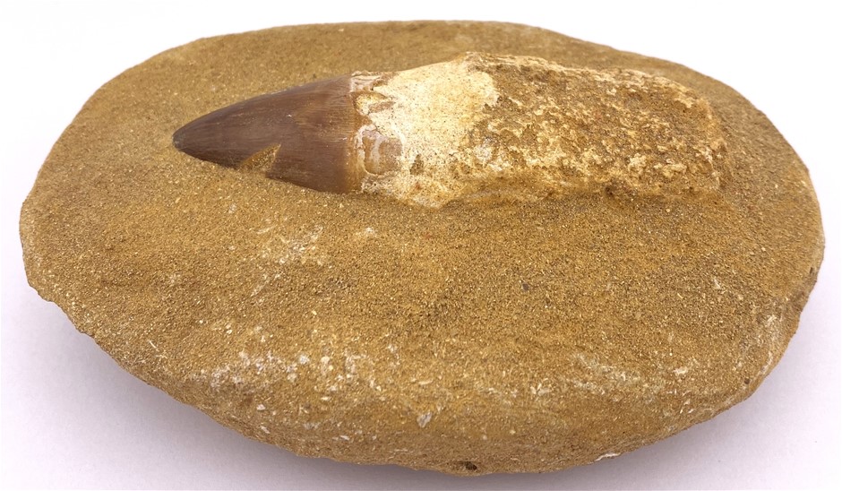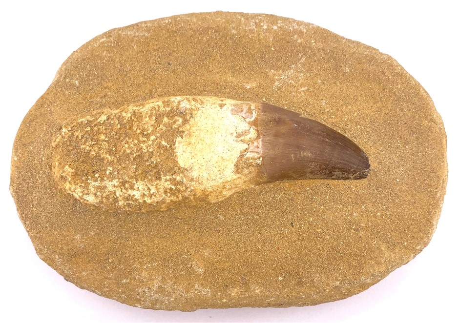 145-65 MILLION YEARS B.P. MOSASAUR TOOTH WITH ROOT FOSSIL FROM THE CRETACEOUS PERIOD