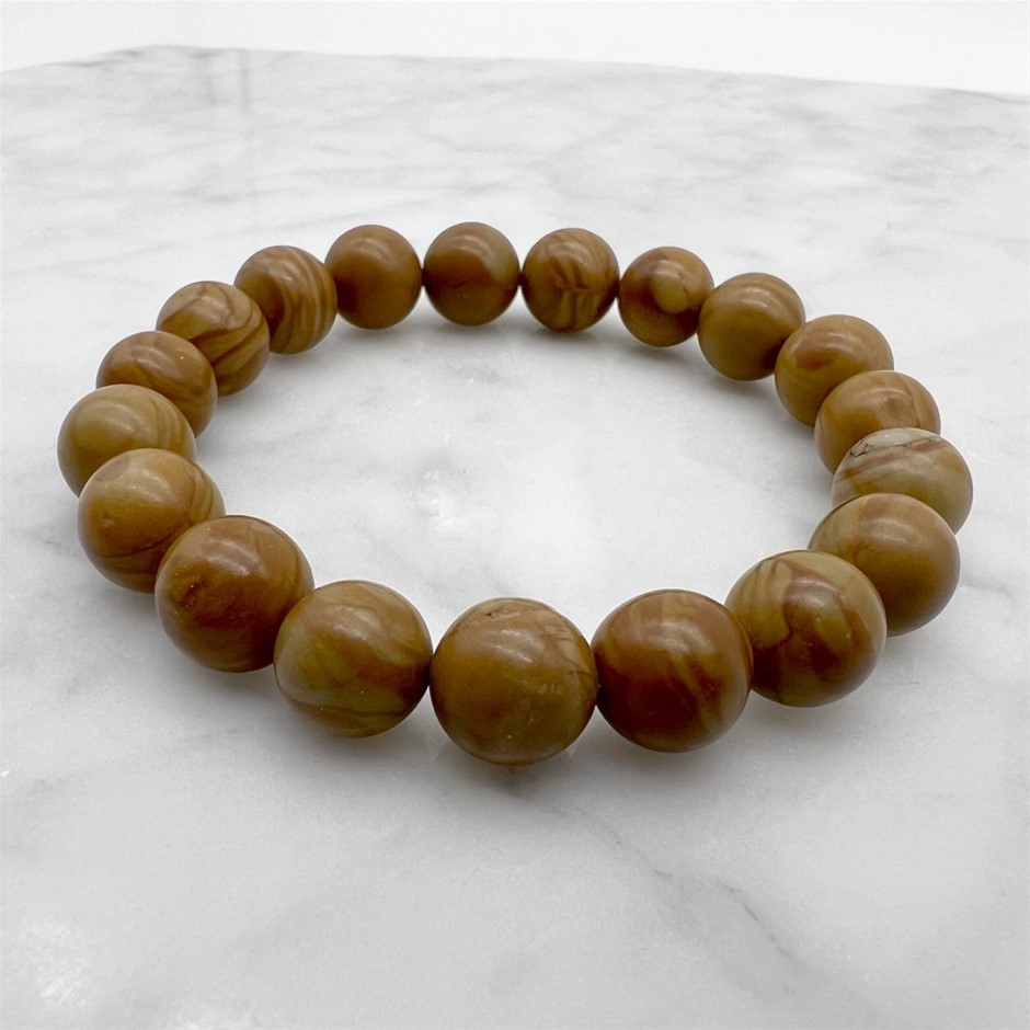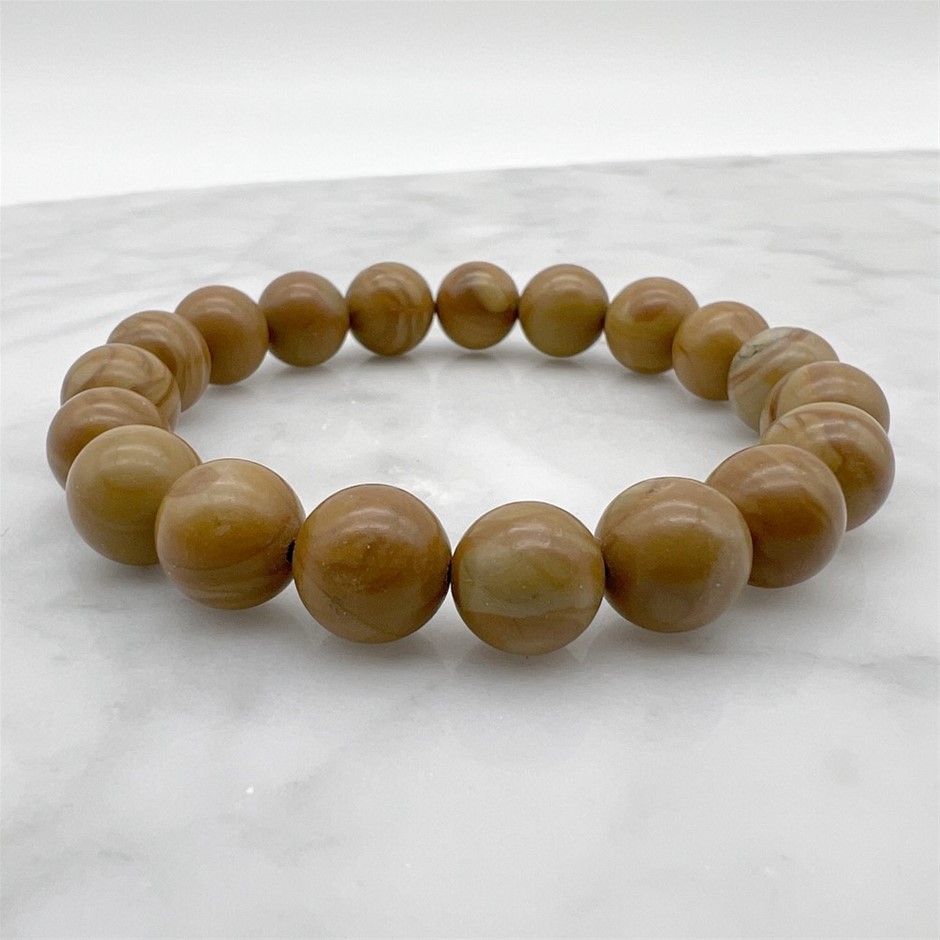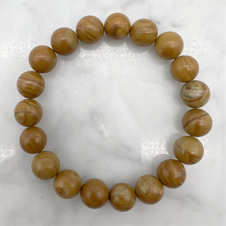 10mm Wood Lace Beaded Stretchy Bracelet