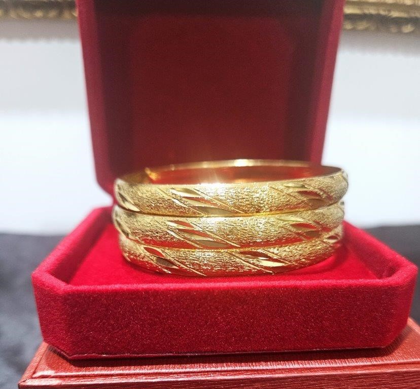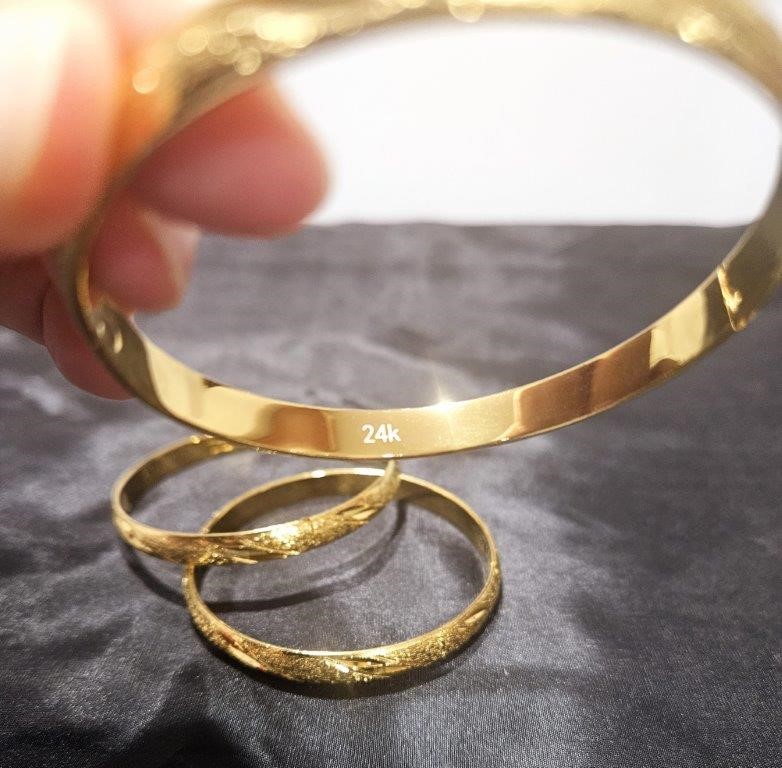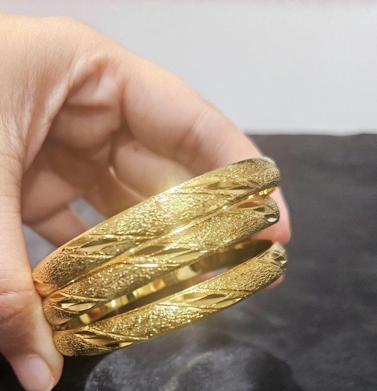 3pcs x 24K Yellow Gold Filled Floral Design Bangles with stamp(24K)