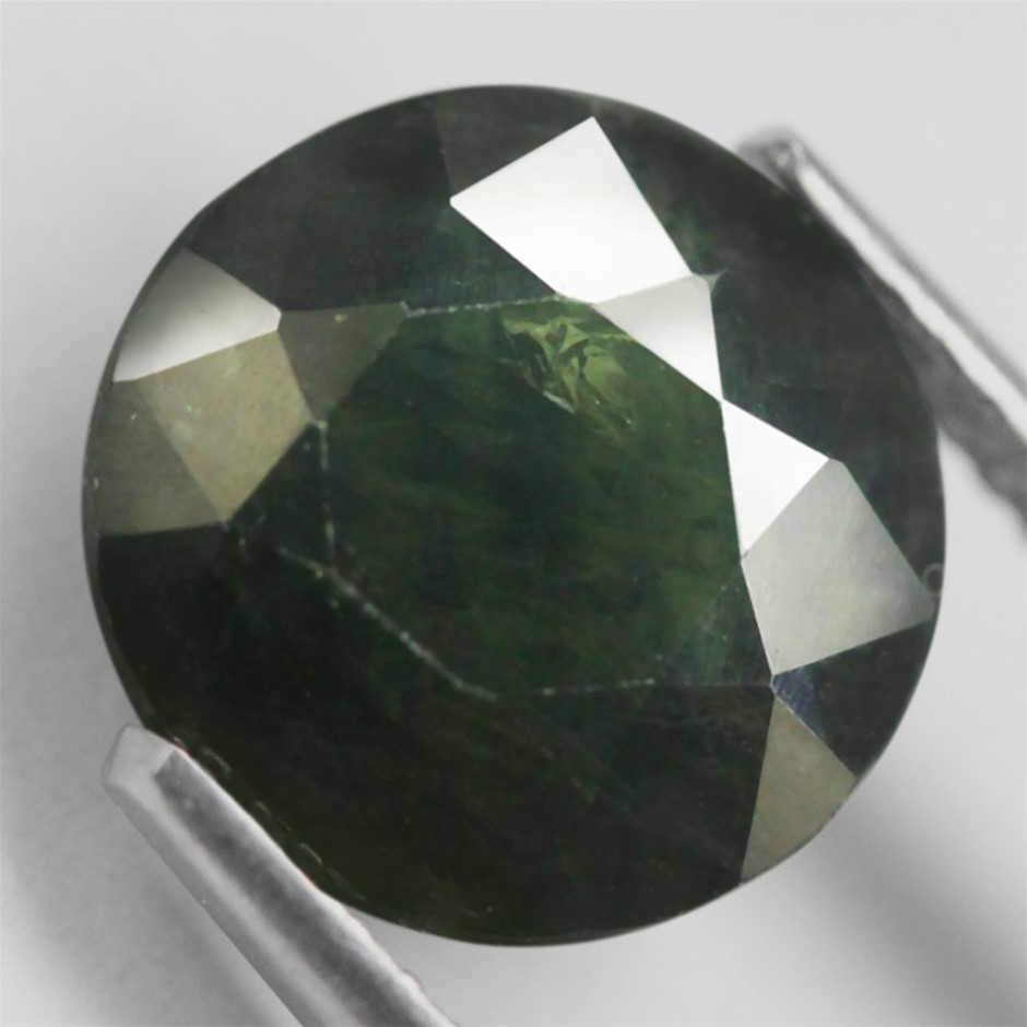 3.58ct Round Facet Cut Bluish Green Sapphire Gemstone - 1Pc
