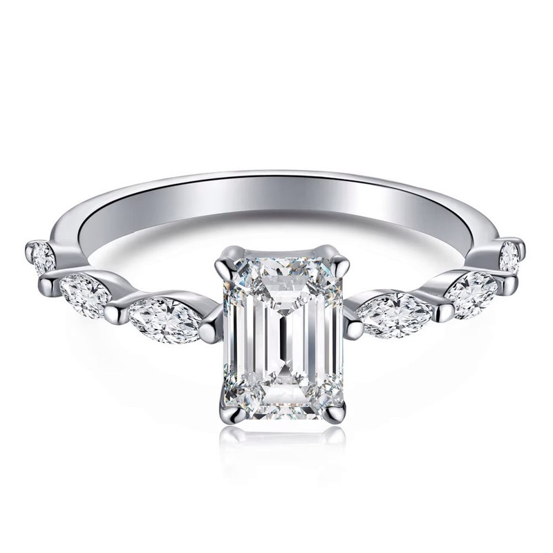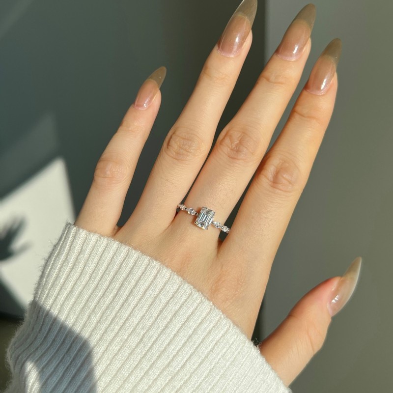 1.0ct Rectangle Cut GRA Certified Moissanite 925 Silver Ring - Size 8