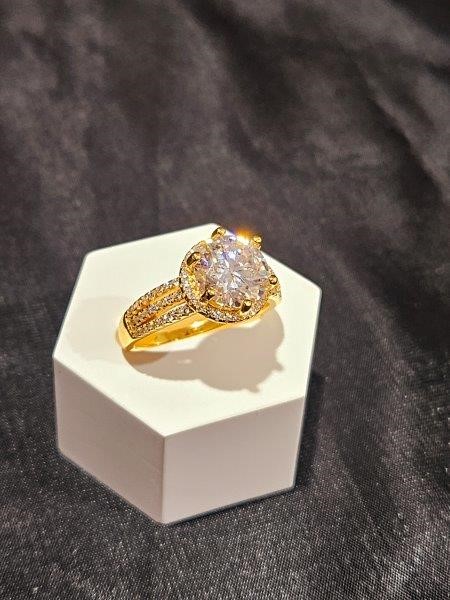 2.0CT GRA Moissanite white Brilliant Cut 18k Real Yellow Gold Vermeil Ring
