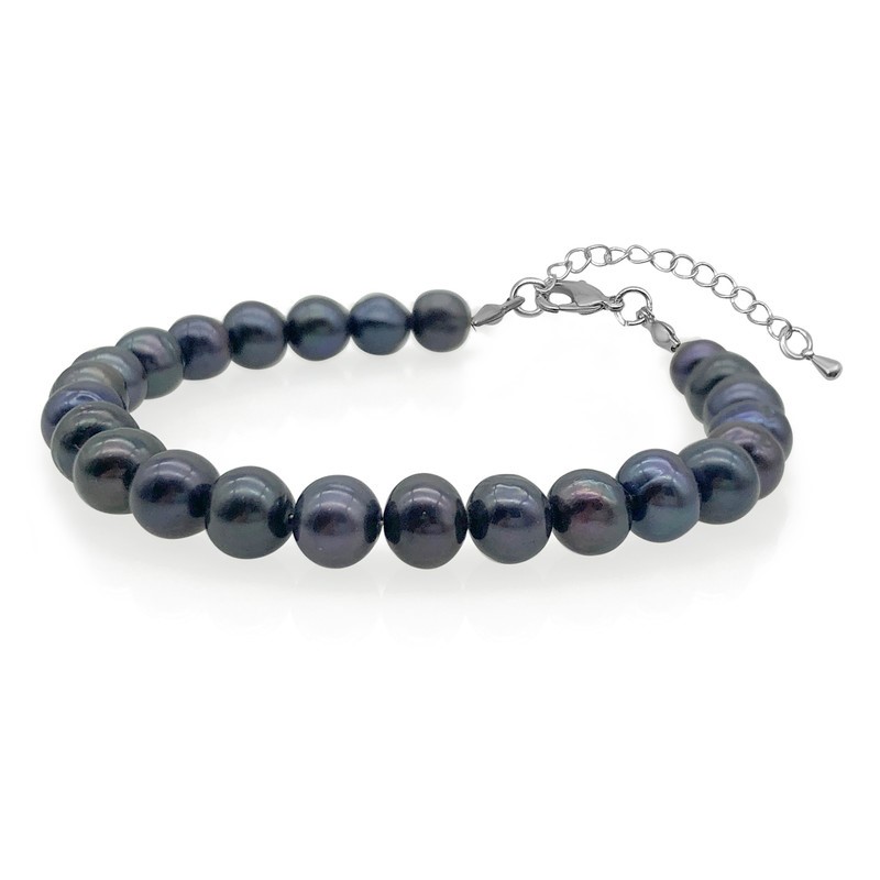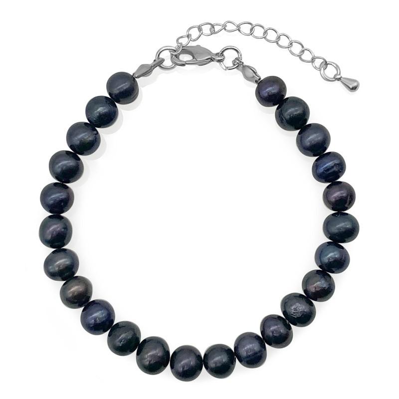 Natural Black 7-8mm Potato Shape Freshwater Pearl with Real Platinum Plated Bracelet.