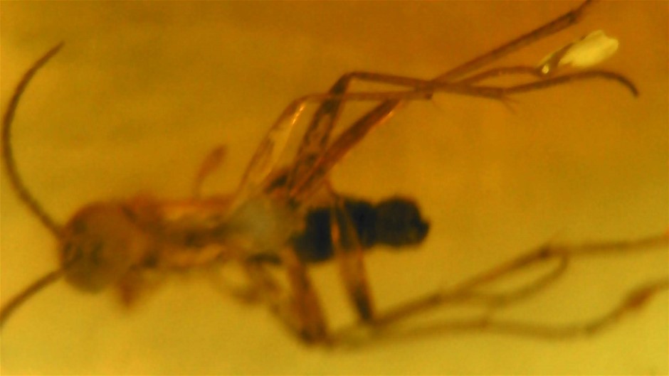 3 MILLION YEAR OLD PIECE OF AMBER FILLED WITH A PREHISTORIC ANT
