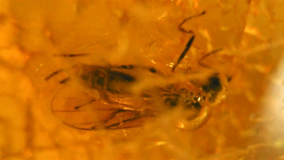 3 MILLION YEAR OLD PIECE OF AMBER FILLED WITH A PREHISTORIC INSECT