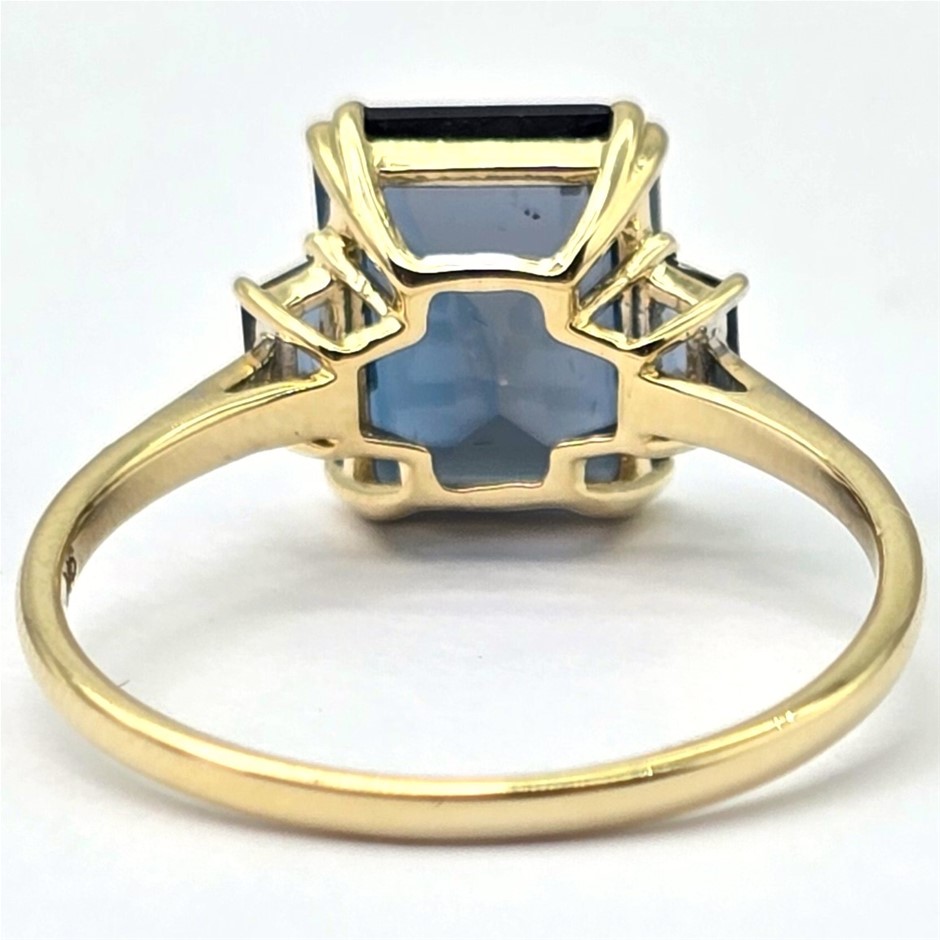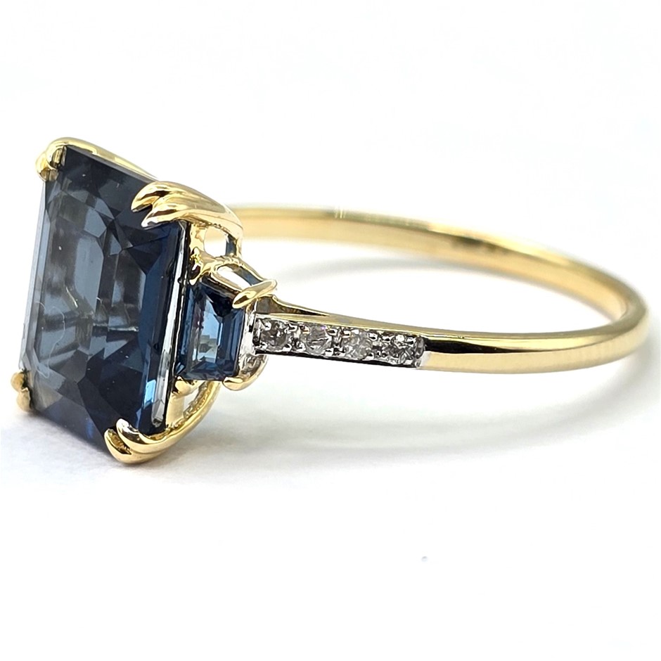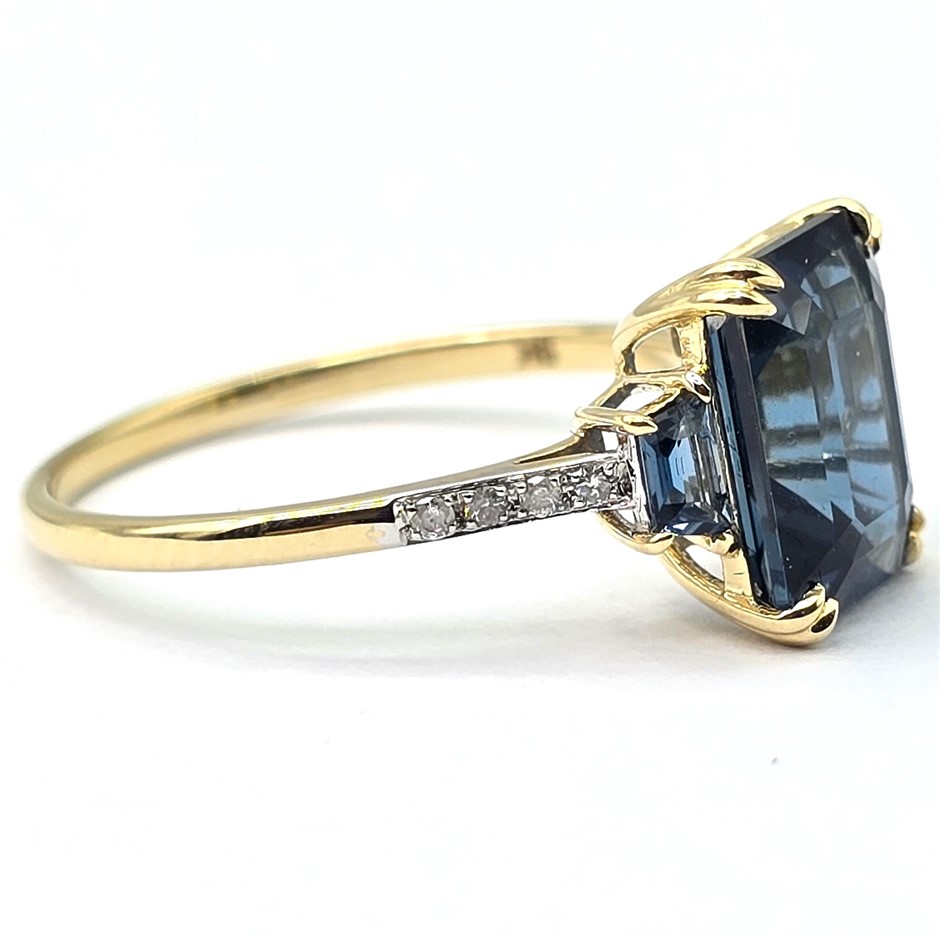 9CT YELLOW GOLD, 3.24TCW DIAMOND & TOPAZ RING