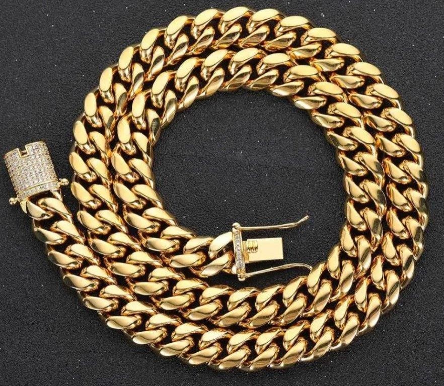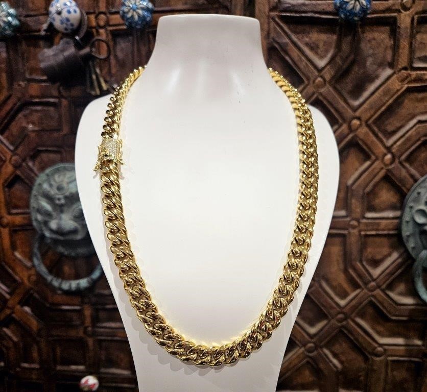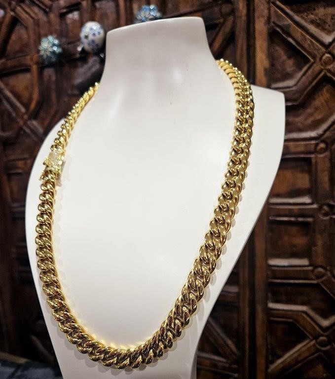 • 18K Triple Yellow Gold Plated Cuban Chain Necklace