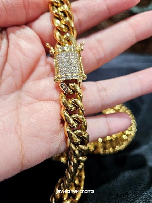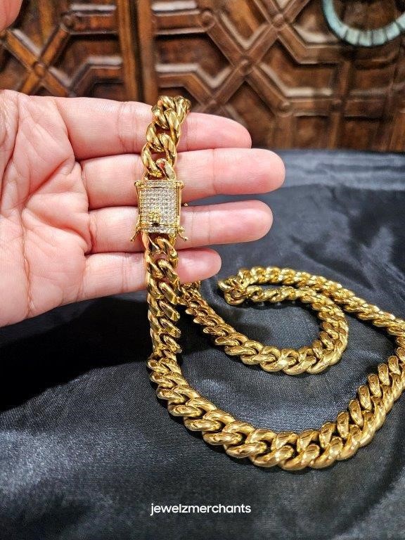 Italy 18K Triple Yellow Gold Plated Cuban Chain (18KGP/Italy)stamped-65cm-12mm