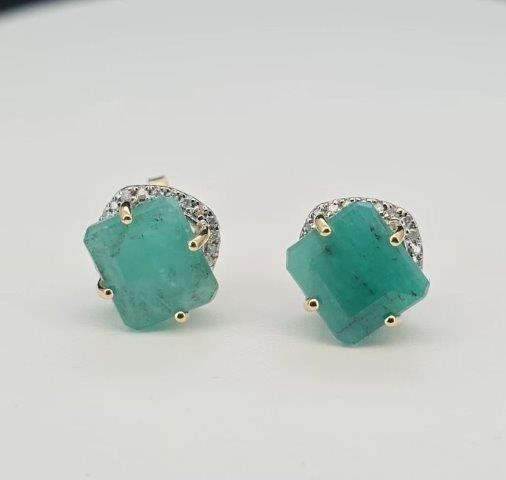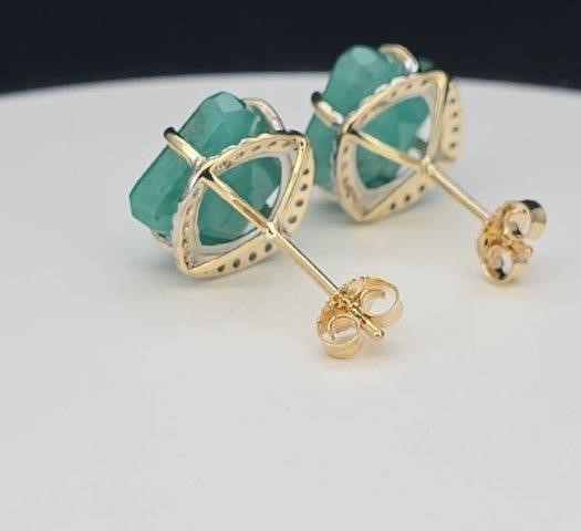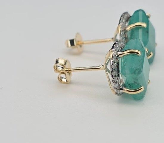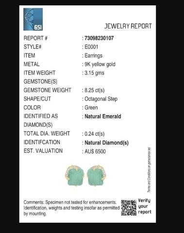 Yellow Gold Natural Emerald & Diamond Earrings with Valuation