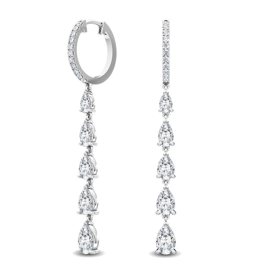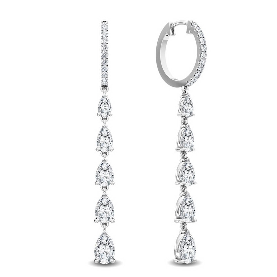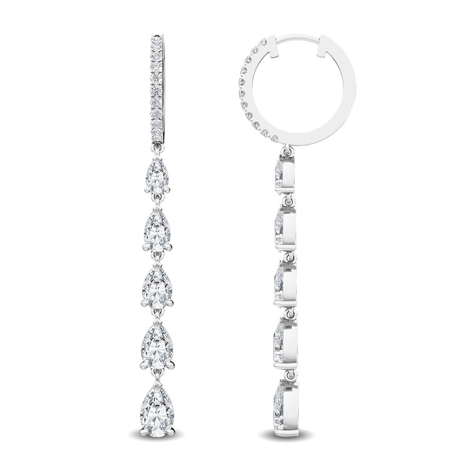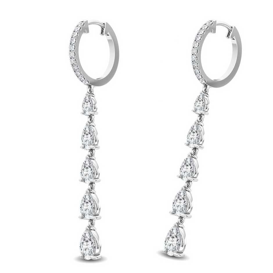 18K White Gold Diamond Hoop Drop Earrings