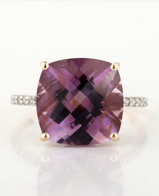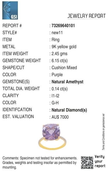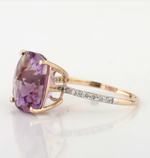 Yellow Gold Natural Amethyst & Diamond Ring with Valuation