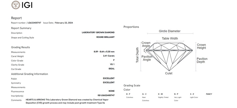 2.41 Carats F/VS1 Lab Grown Diamond - IGI Certified