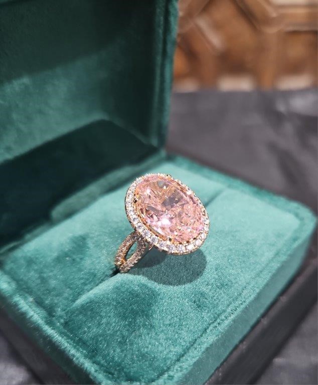 • Stones: 10.ct Oval Pink Simulated VVS1 brilliant-cut multicolor diamonds