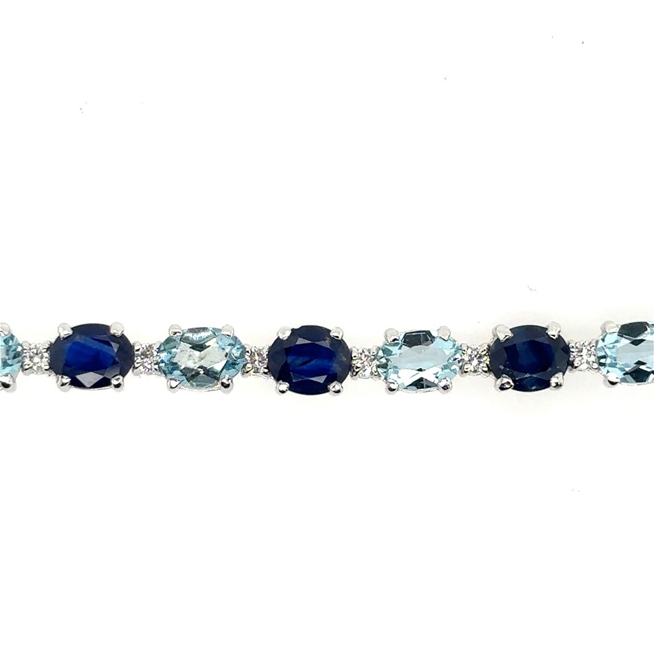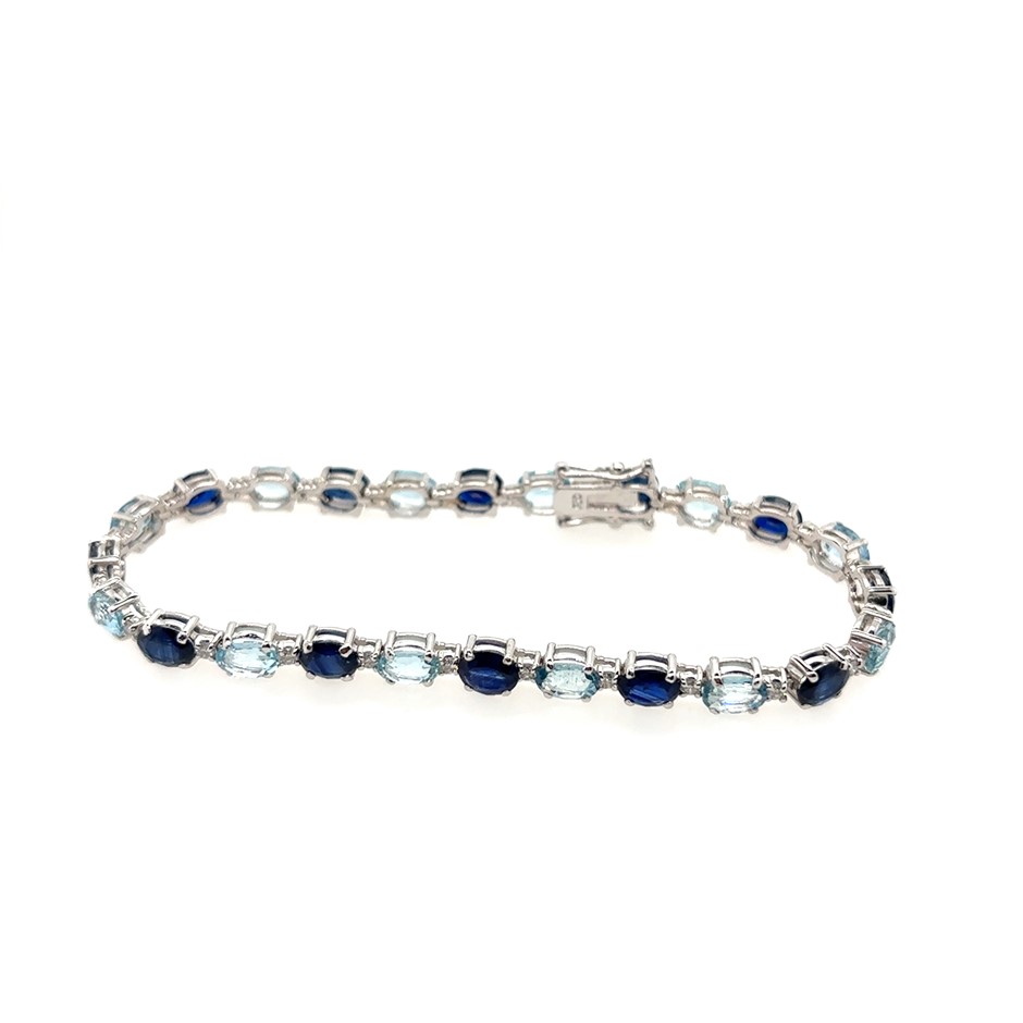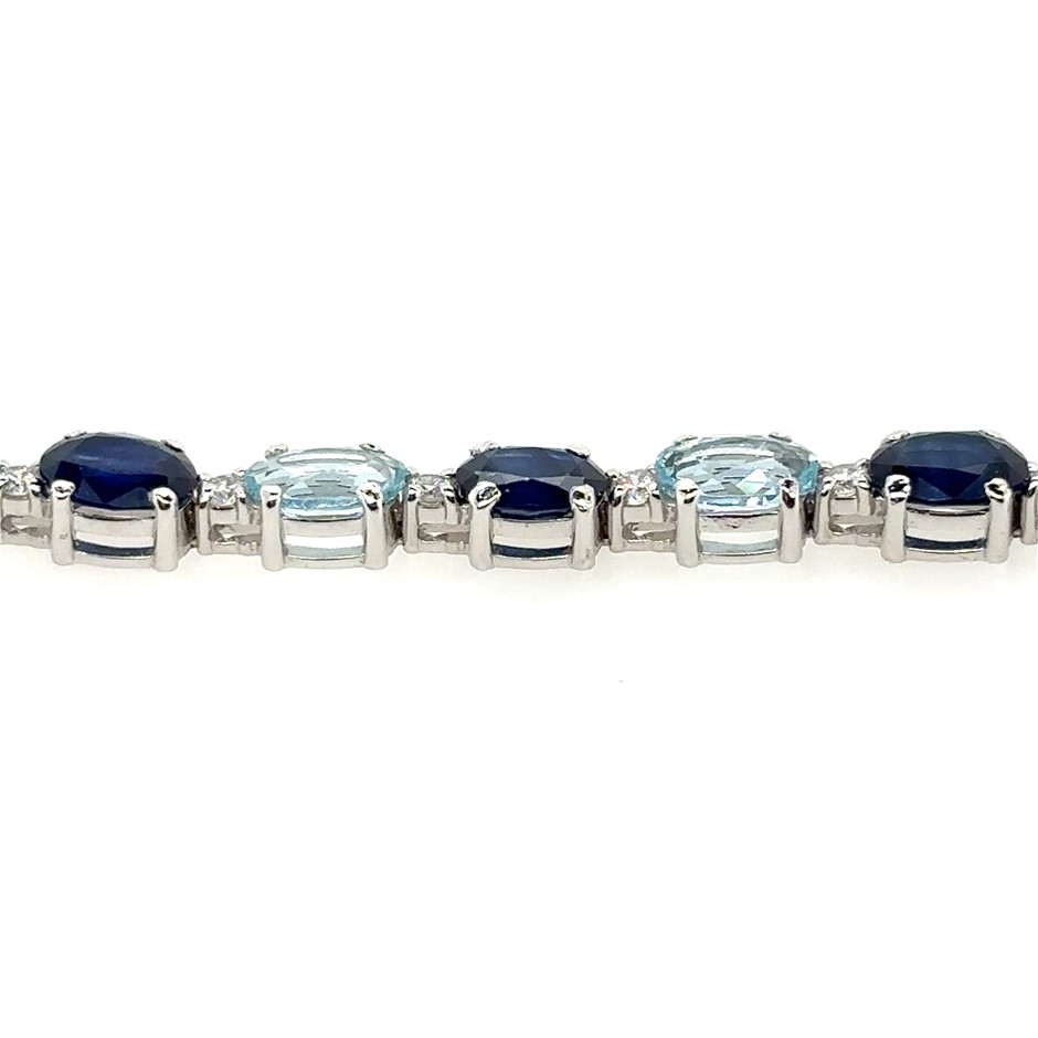 8.20ct Twelve Stones Oval Cut Blue Sapphire & 5.65ct Twelve Stones Oval Cut Aquamarine & Dia. 0.56ct Twenty Four Stones Round F/VS Bracelet 18K White Gold