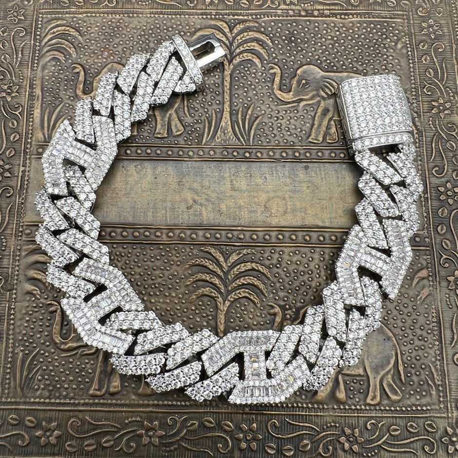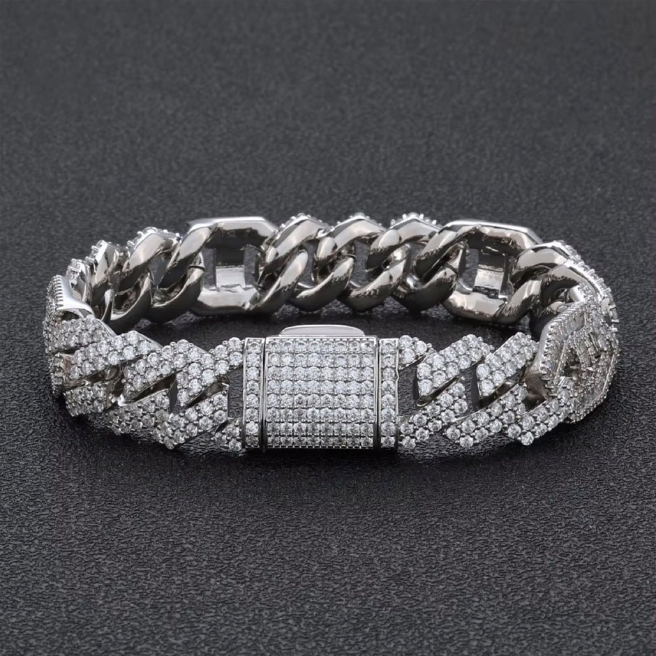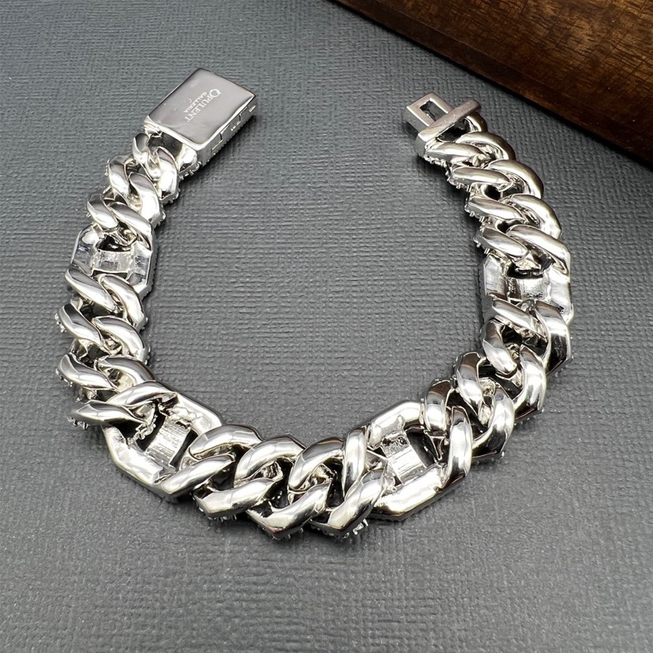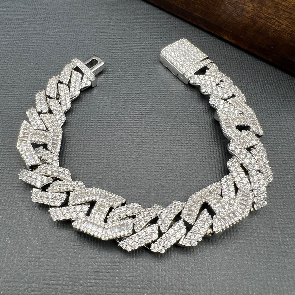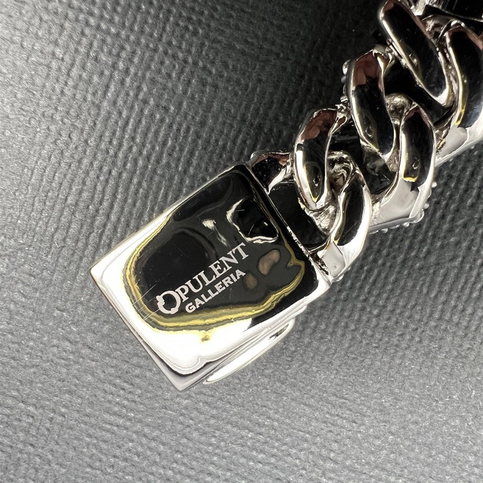 Opulent Galleria - 18K White Gold-Filled Cuban Chain Bracelet with Simulated Diamonds, 16MM Wide – 20.3cm