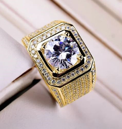 2.0ct Moissanite White Brilliant Cut Ring high-quality solid 925 sterling silver and Covered by 18k Yellow Gold Plated. This luxurious piece, stamped S925, comes with a GRA Certificate