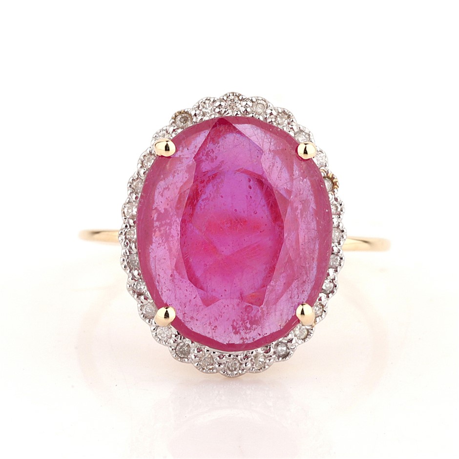 • The Ring consists of (1) Oval Brilliant Natural Ruby. Surrounding the main stones are Round Brilliant Cut Natural Diamonds.