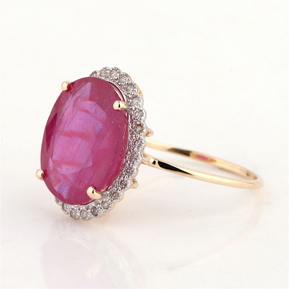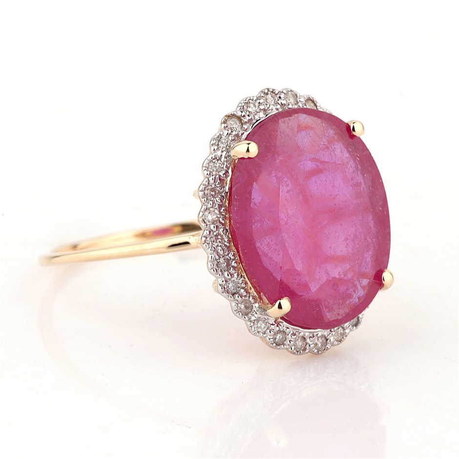 Yellow Gold Natural Ruby & Diamond Ring with Valuation