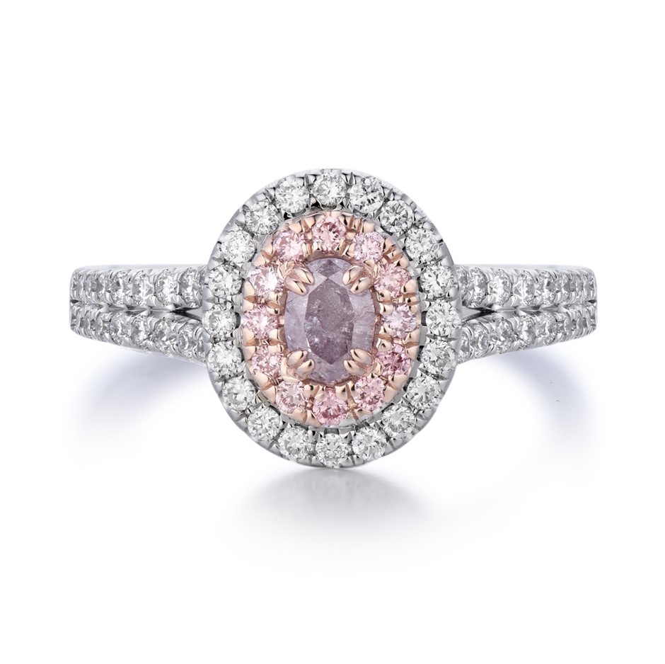 Natural Pink Diamond: One (1) claw set oval brilliant cut natural pink diamond with a stated weight of 1=0.395 carats. The colour stated is fancy purple pink and the clarity stated is I 3. Dimensions: 4.01mmx2.80mmx2.20mm.