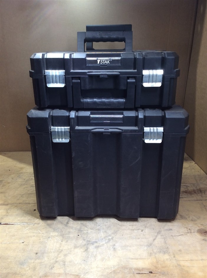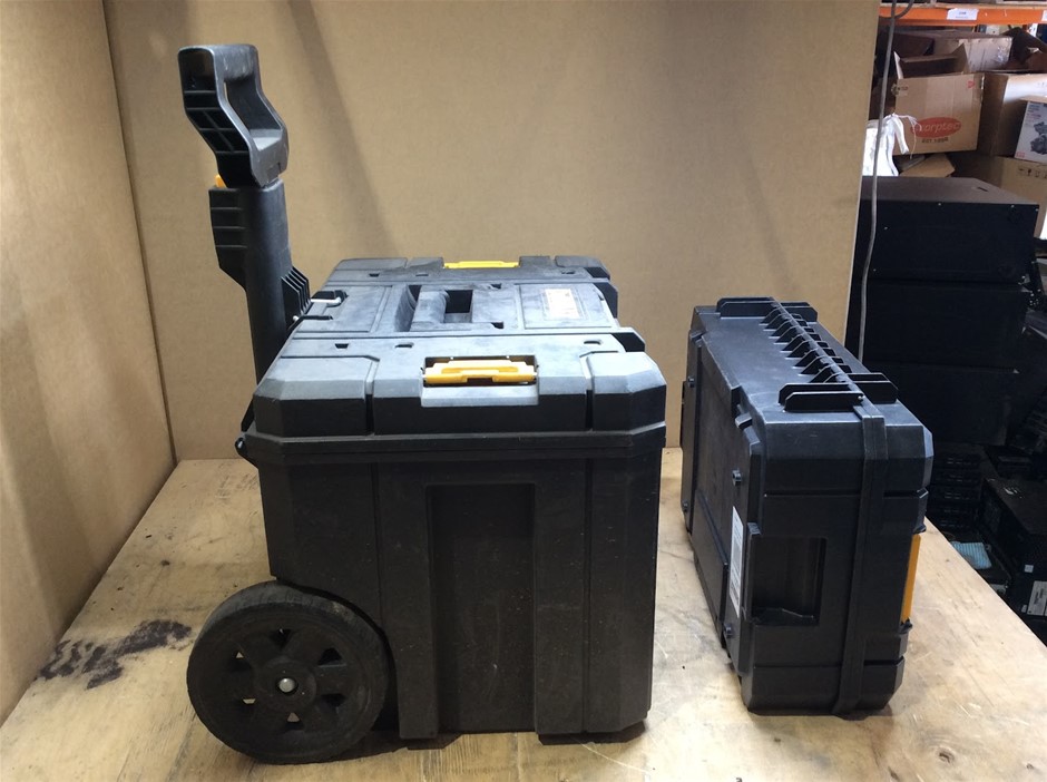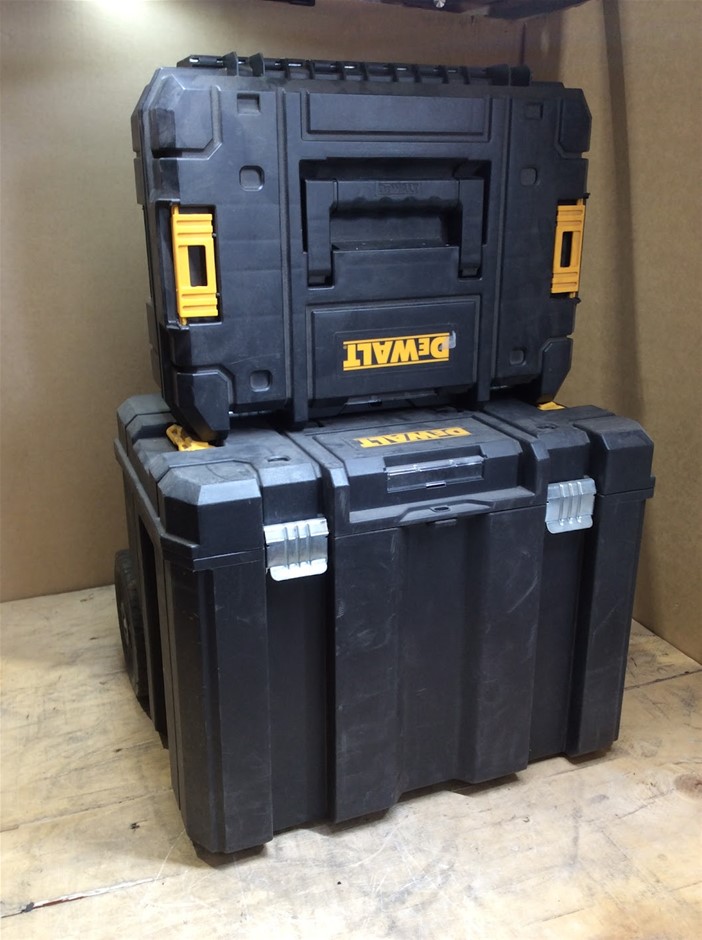 DeWALT TSTAK Mobile Storage Rolling Tool Box + DeWALT TSTAK II Flat Top Tool Storage Case