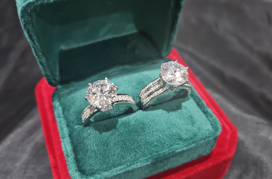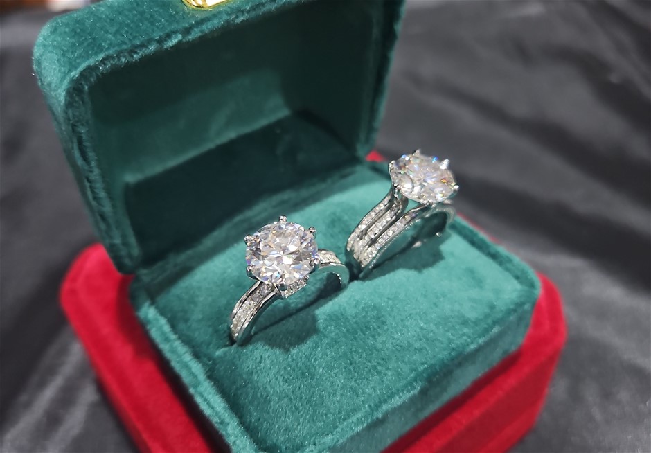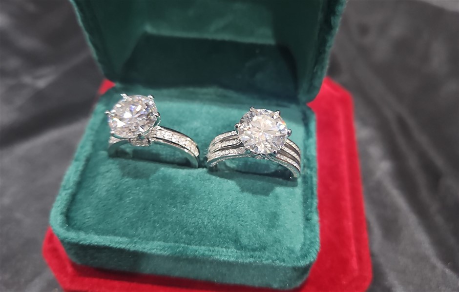 2pcsx5.0ct GRA Moissanite white -925 Sterling Silver Ring -8 US