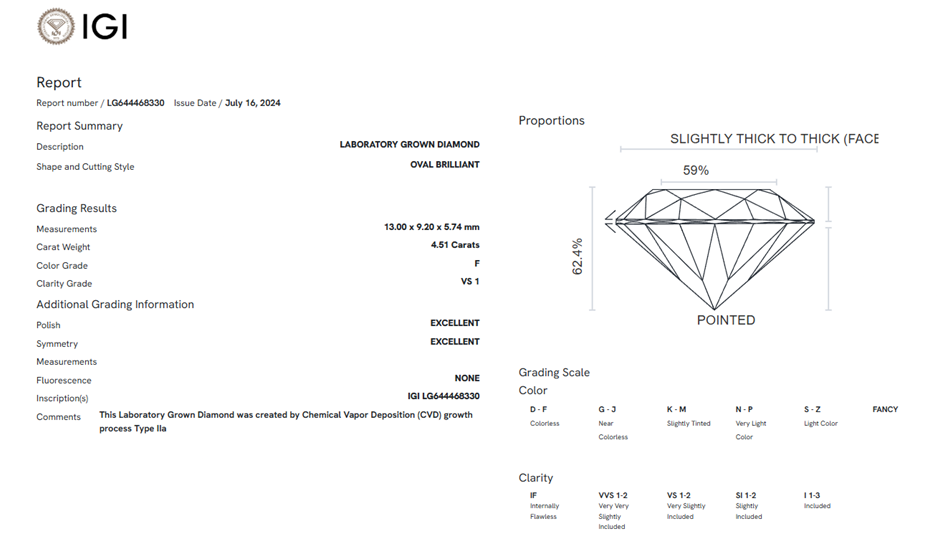 4.51 Carats F/VS1 Lab Grown Diamond - IGI Certified
