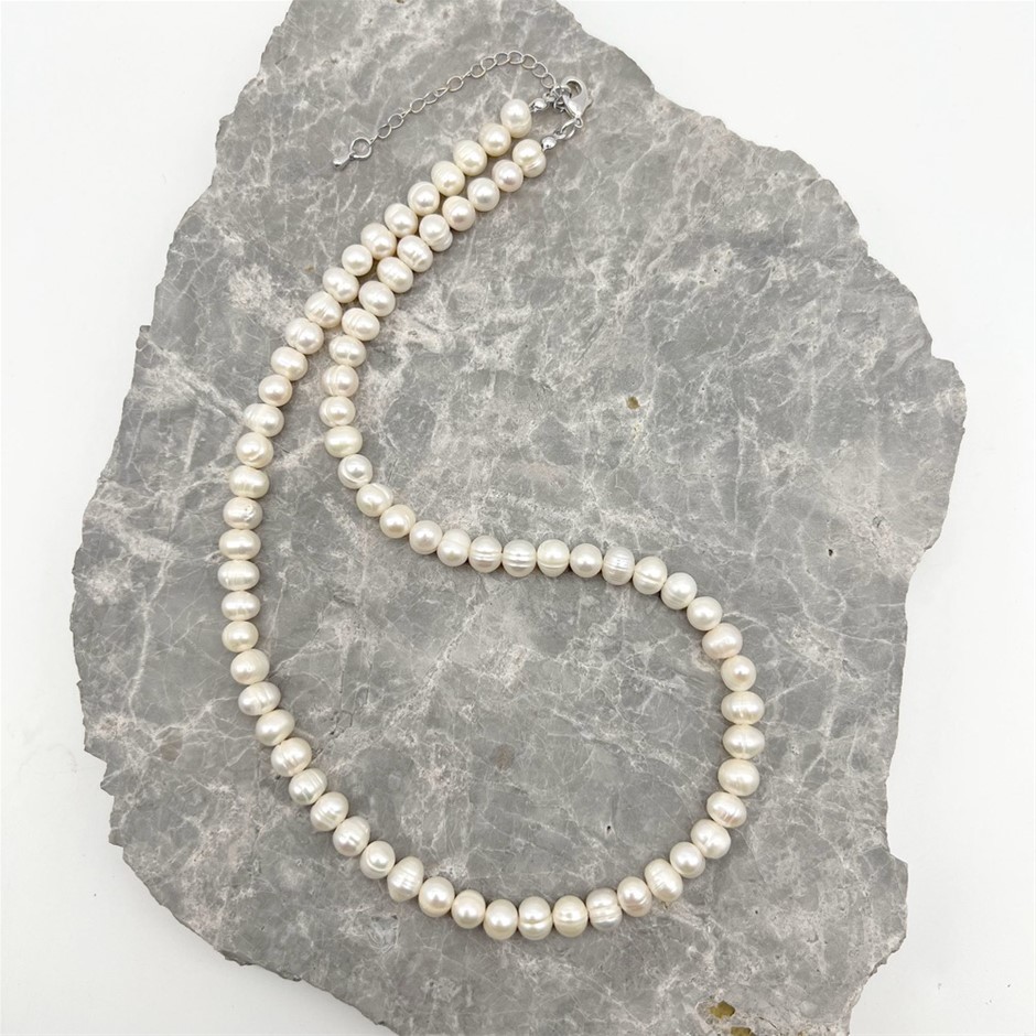 7-8mm Potato Shape Pearl with Real Platinum Plated Necklace