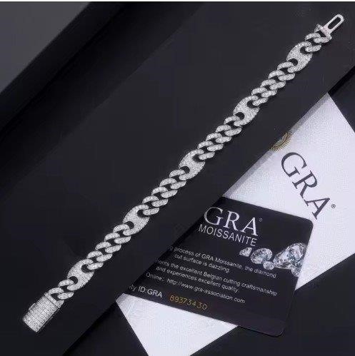 Moissanite GRA Bracelet 18k Real Gold -18cm-925 Sterling Silver