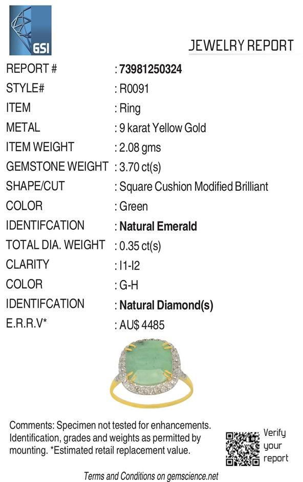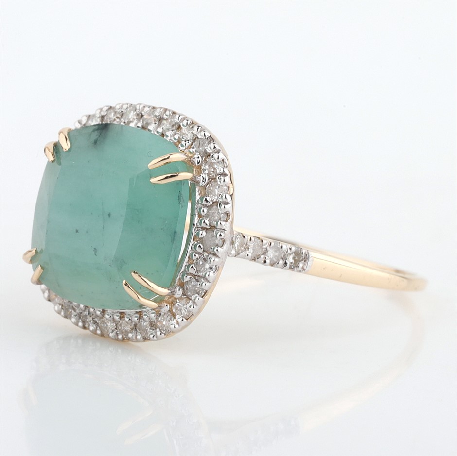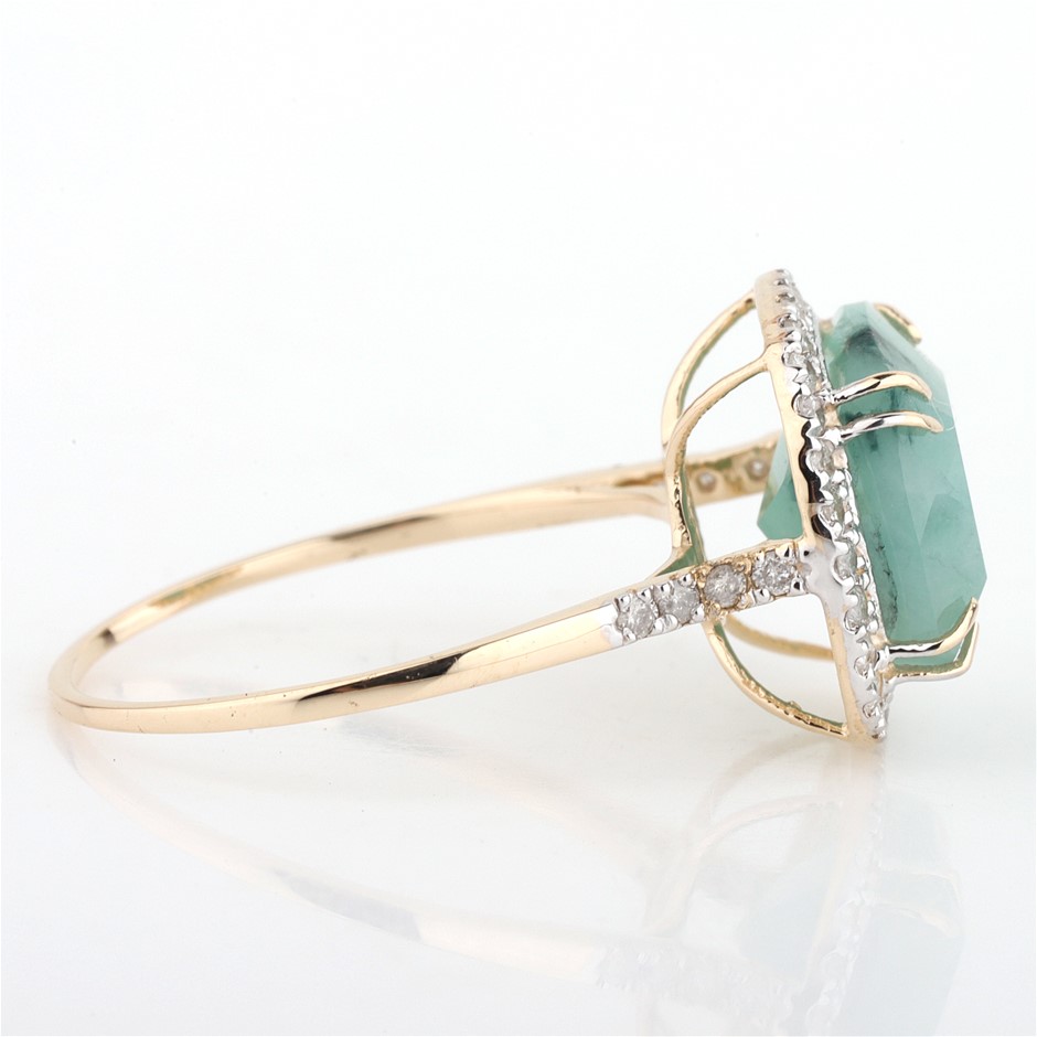 Yellow Gold Natural Emerald & Diamond Ring With Valuation