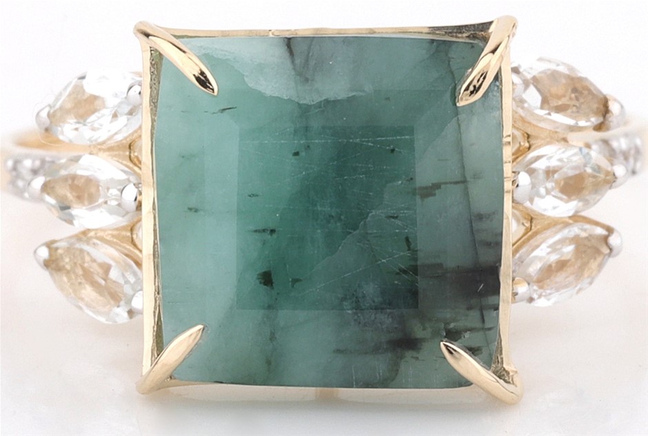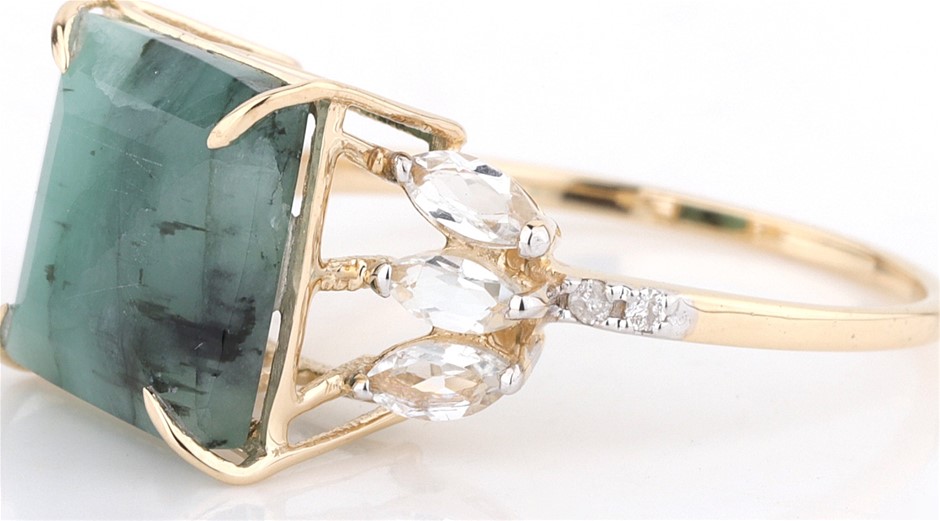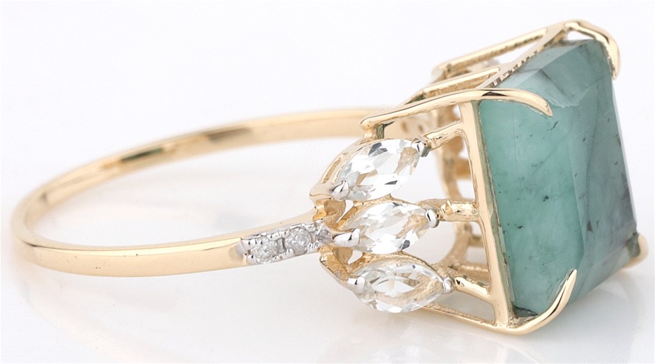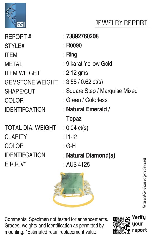 Yellow Gold Natural Emerald & Diamond Ring With Valuation