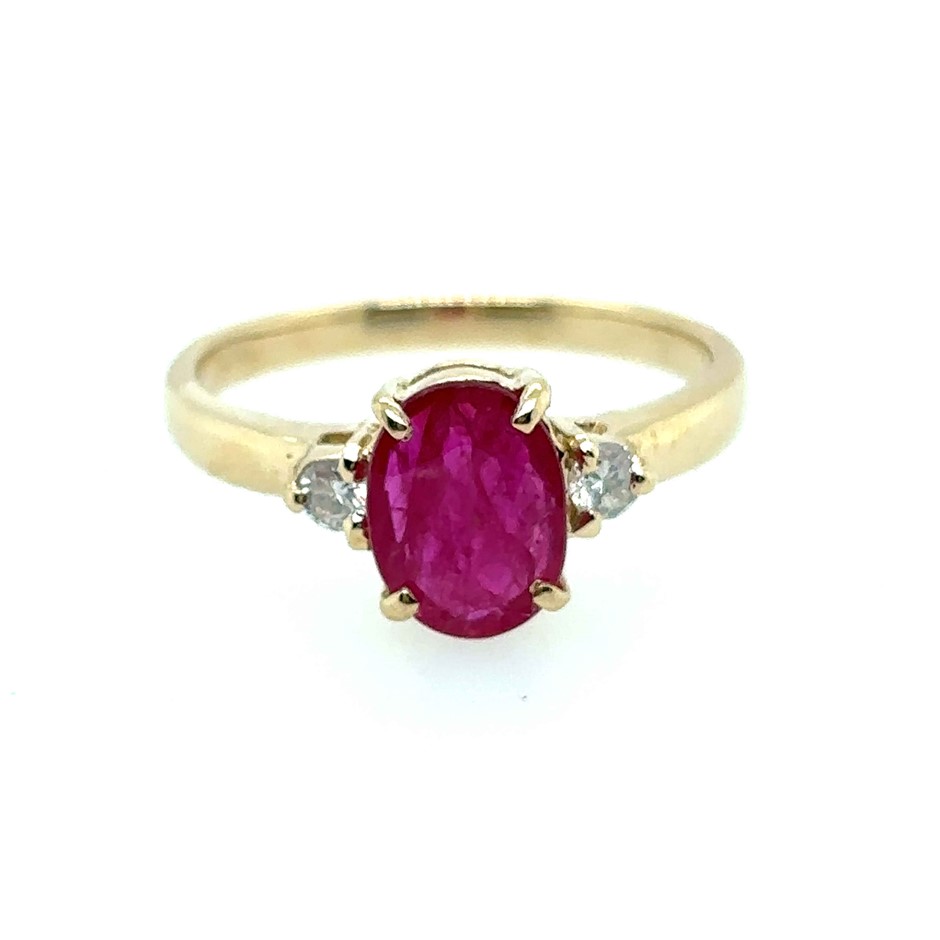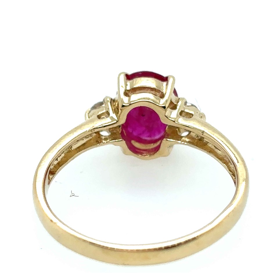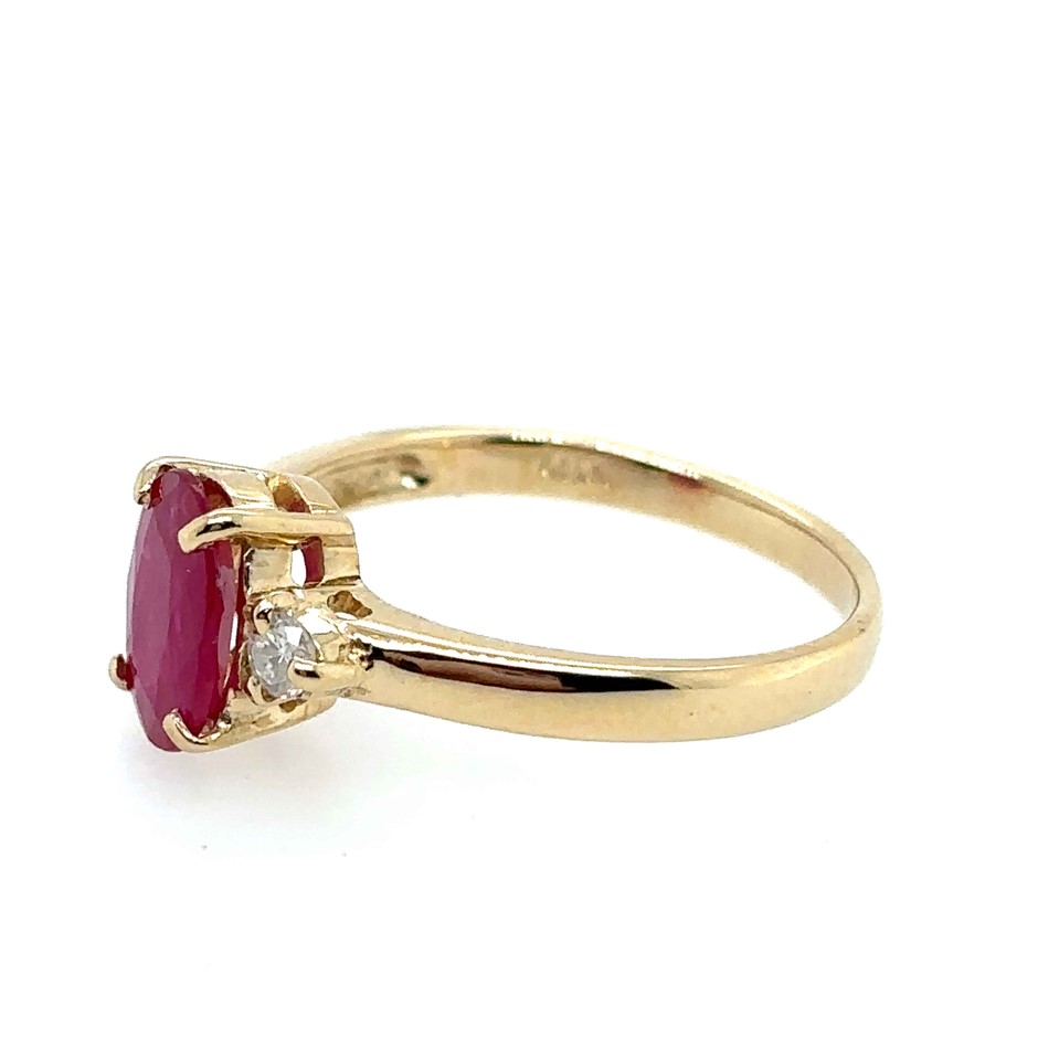 1.20ct oval cut Mozambique Ruby & 0.06ct 2 Stones Round Dia. SI/F-G Ring 18K Yellow Gold