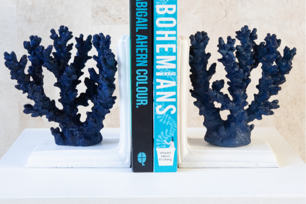 Add some Hamptons-style to your living room with navy coral resin bookends.Elevate your bookshelf, hall console, coffee table or mantelpiece.2 available.