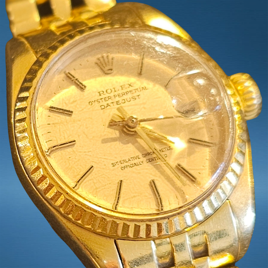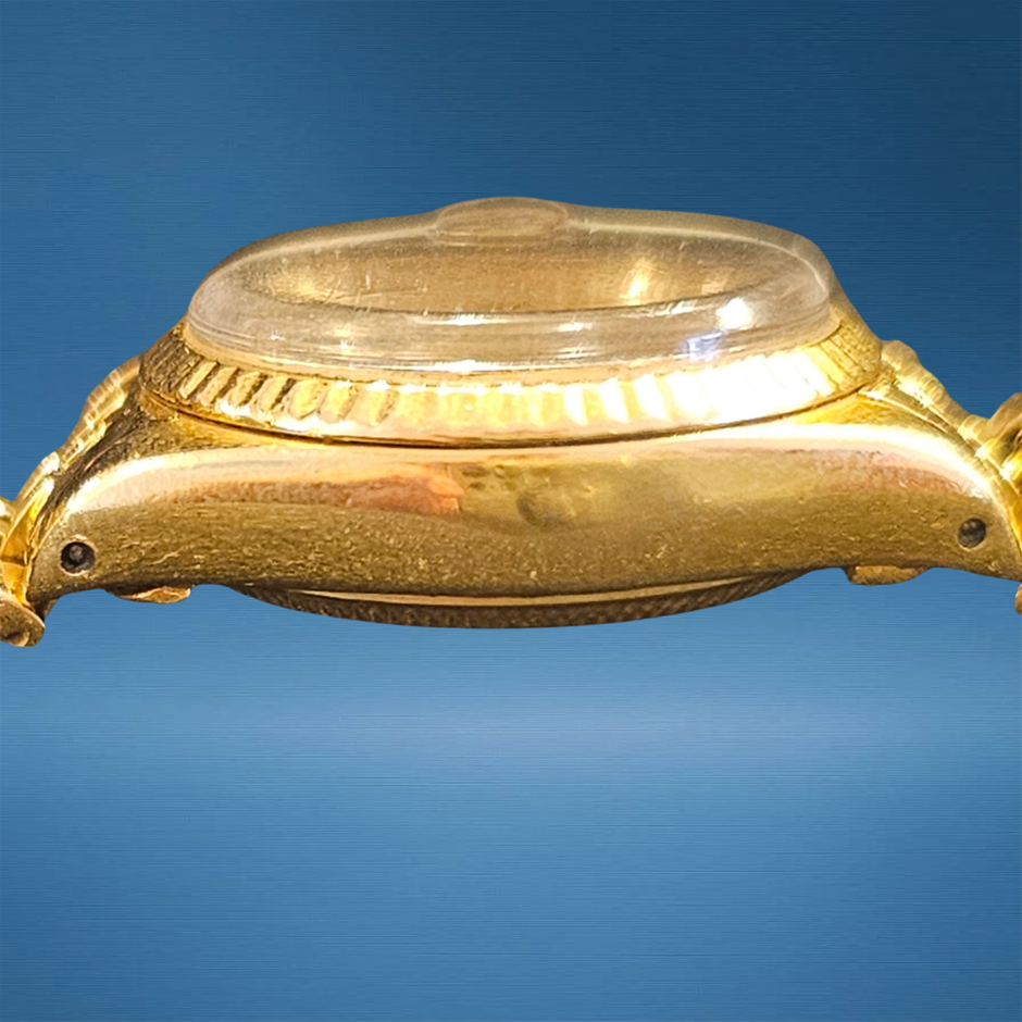 This Rolex Datejust 69178 pairs classic 18K yellow gold elegance with refined Datejust proportions, offering timeless presence in a compact 26 mm profile. Its automatic movement and iconic Cyclops date window make it versatile for daily wear or formal occasions.