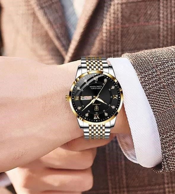 • The watch also features a day and date dial. This provides the practical benefit of displaying the current day/date, allowing the wearer to quickly and easily reference the date without needing to consult another device.