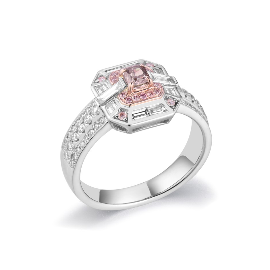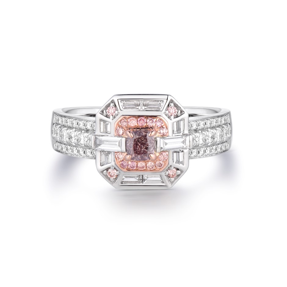 • Carat weight of the centre natural pink diamond: 0.21 carats.